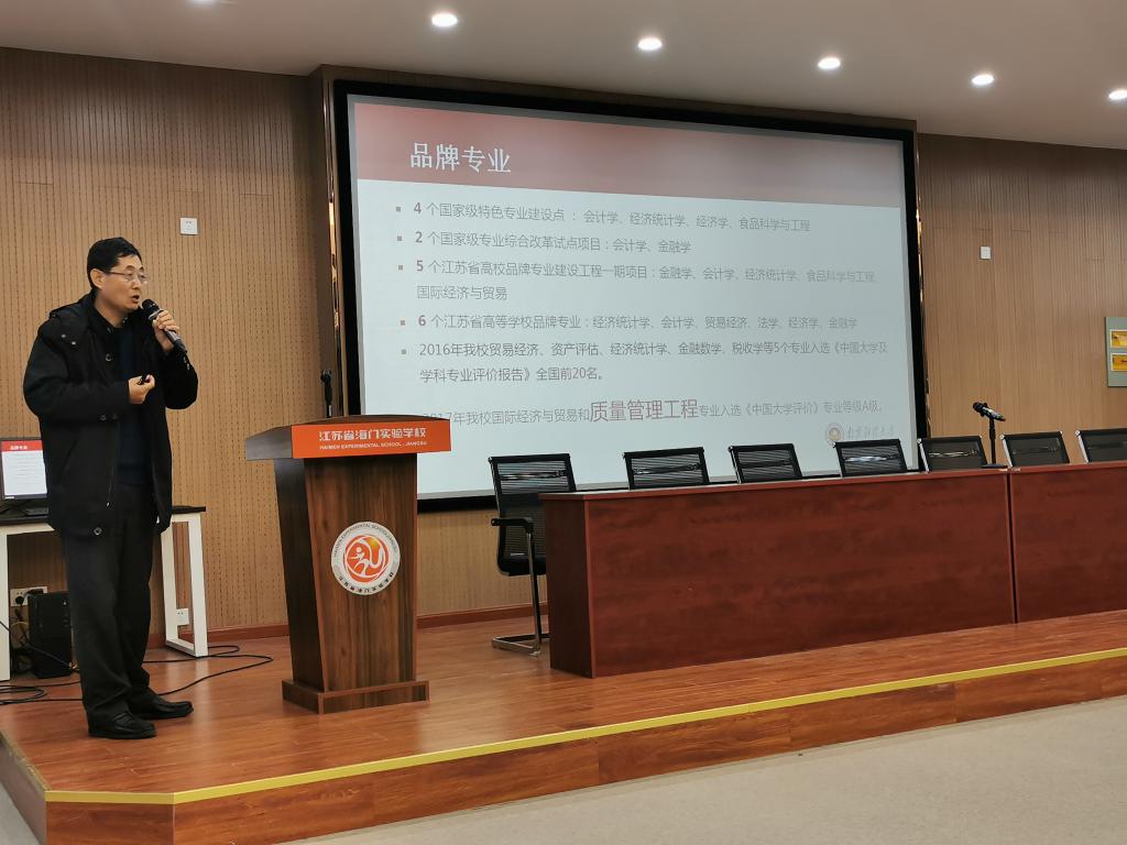 在江苏省海门实验学校,张庆民老师为的高三年级学生及家长介绍了我校的基本情况,并为他们带来专题讲座。他首先介绍了绍了我校特色办学、科研能力、人才培养、升学考研情况、就业情况,让高三考生及家长对我校有了更全面深入的认识;接着张老师以“卓越绩效评价与政府质量奖”为题,为现场的学生及家长普及了质量管理与工程的相关知识。最后,学生及家长对我校的招生政策及高考志愿填报等问题进行了提问,两位老师为他们一一解答。
