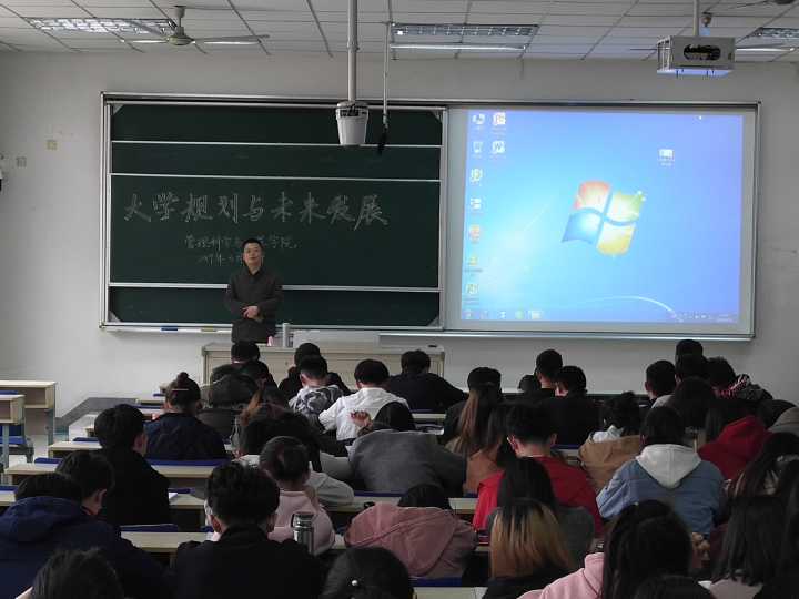 3月18日中午,williamhill英国在德济楼103教室,举办了主题为“大学规划与未来发展”交流会,学院党总支书记张圣兵老师,副院长唐润老师,辅导员郑媛媛老师以及管工院2017级全体同学参加此次活动。