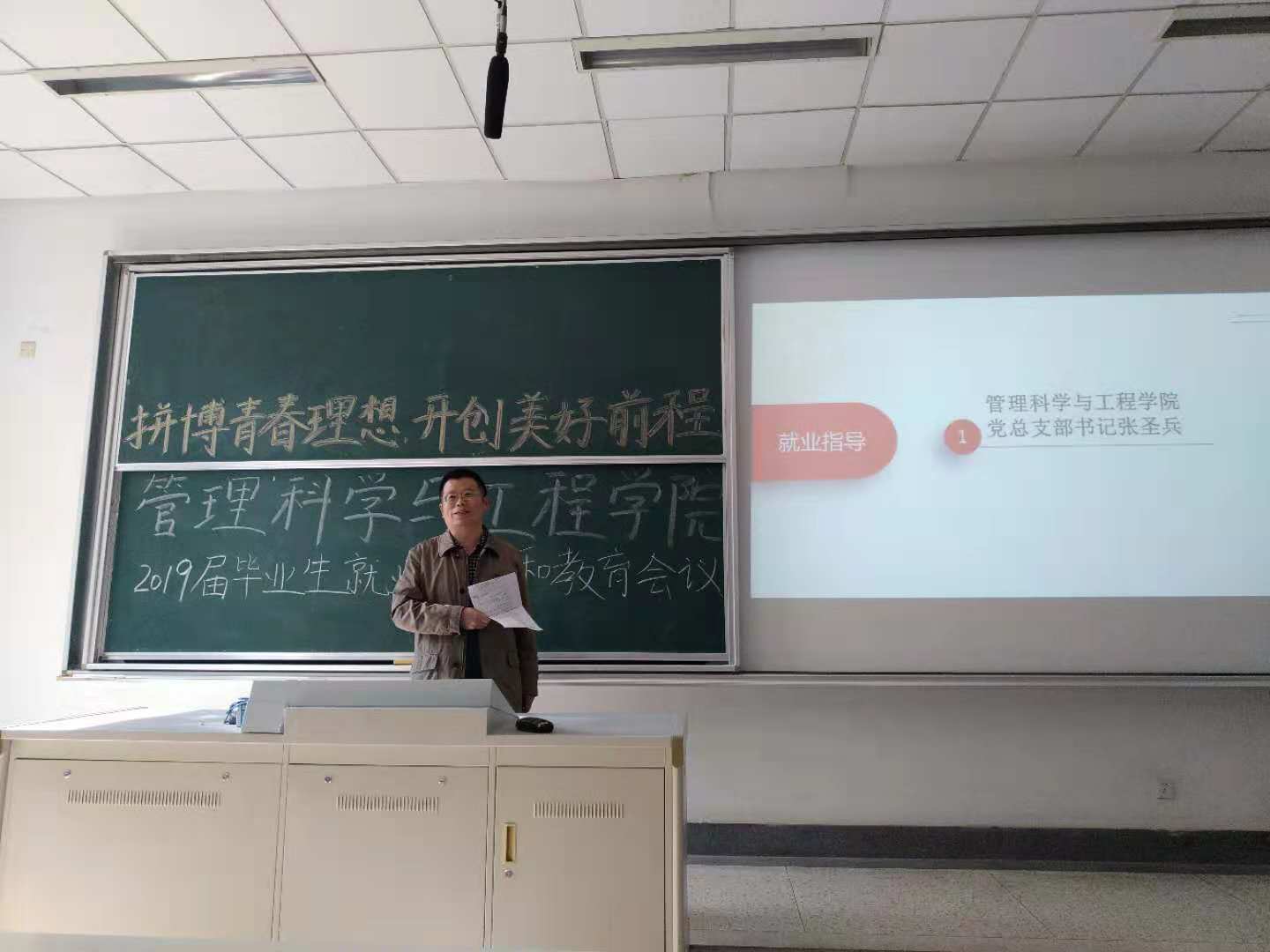 首先,张圣兵书记祝贺大家即将完成大学四年的课程学习,希望大家在今后能取得更好的成绩。接着,张圣兵书记就求职、考研、处理好就业与学业关系三方面,向大家提出几点期望:要求毕业班同学树立正确的就业观和成才观,牢记“自谦、自信、务实、超越”的校训,对自己负责、对家庭负责、对社会负责;希望考研的同学坚定信念,坚持努力,并祝福同学们都能收获一个好成绩;希望同学们处理好学业与工作、考研与工作的关系,要认真对待每一件事,特别是毕业论文要与指导老师主动沟通;最后张圣兵书记希望同学们要珍惜友谊,相互支持,资源共享,携手“拼搏青春理想,开创美好前程”。