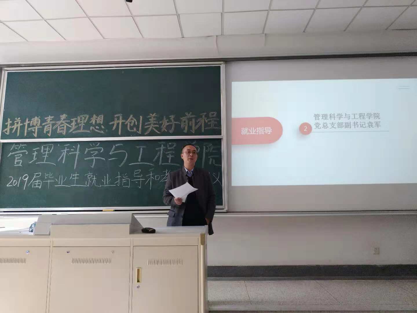 接着,袁军副书记分析了就业形势,强调了学业和求职的要求,要求同学们重视学业,对照本科生专业培养计划,明确毕业、学位授予要求,认真核对所修学分和成绩,确保顺利毕业;其次,他希望同学们要尽快完成从大学生向社会人的角色转变,调整好心态,增强责任意识,求职一定要把握好时间节点,签约要讲求诚信,慎重签约,同时防止上当受骗。