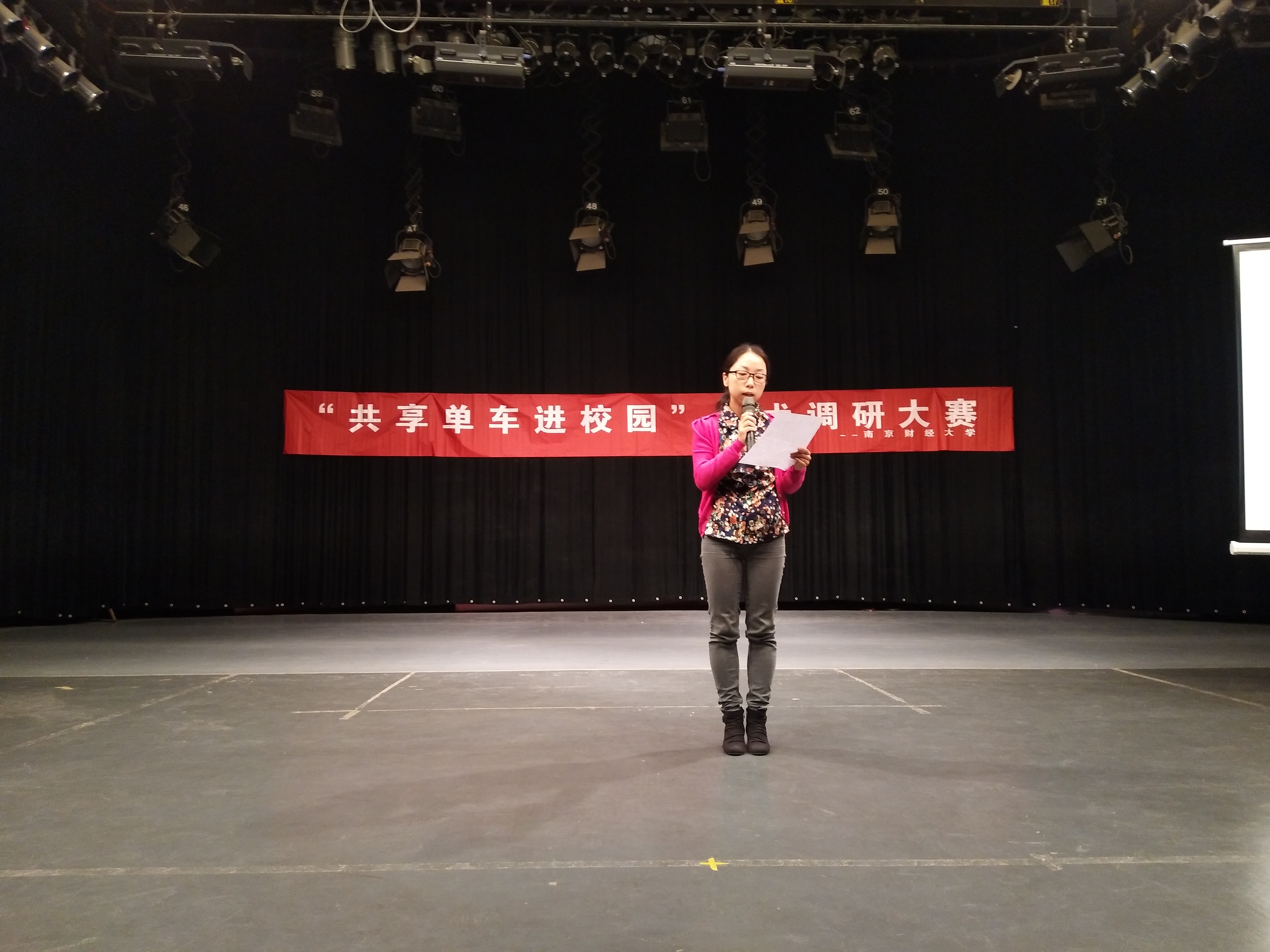 现如今,摩拜、小蓝等共享单车已逐渐成为我们日常出行的重要选择之一。5月12日18时30分, williamhill英国在校园电视台演播厅举办“共享单车进校园”学术调研大赛决赛。莅临现场的嘉宾有校团委副书记王孝晨、williamhill英国党总支副书记袁怡琨、williamhill英国管理科学系副主任于荣、分团委书记唐方舟、辅导员郑媛媛、姜艳。此外,各学院学术部代表也前来观赛。