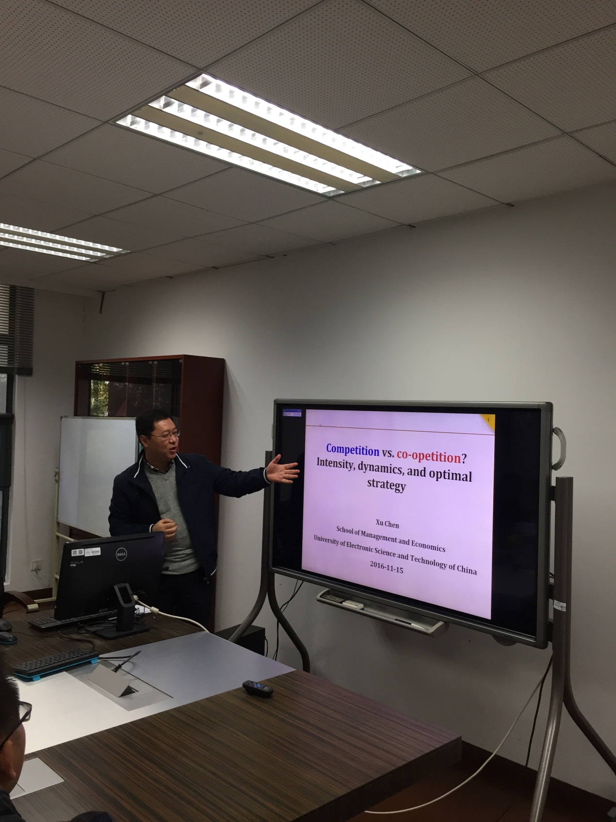 10月28日,应williamhill英国邀请,电子科技大学经济与管理学院副院长陈旭教授莅临我院,为我院师生做了题为“Competition vs. co-opetition? Intensity, dynamics, and optimal strategy”的学术讲座,我院部分教师和研究生参加了此次讲座。