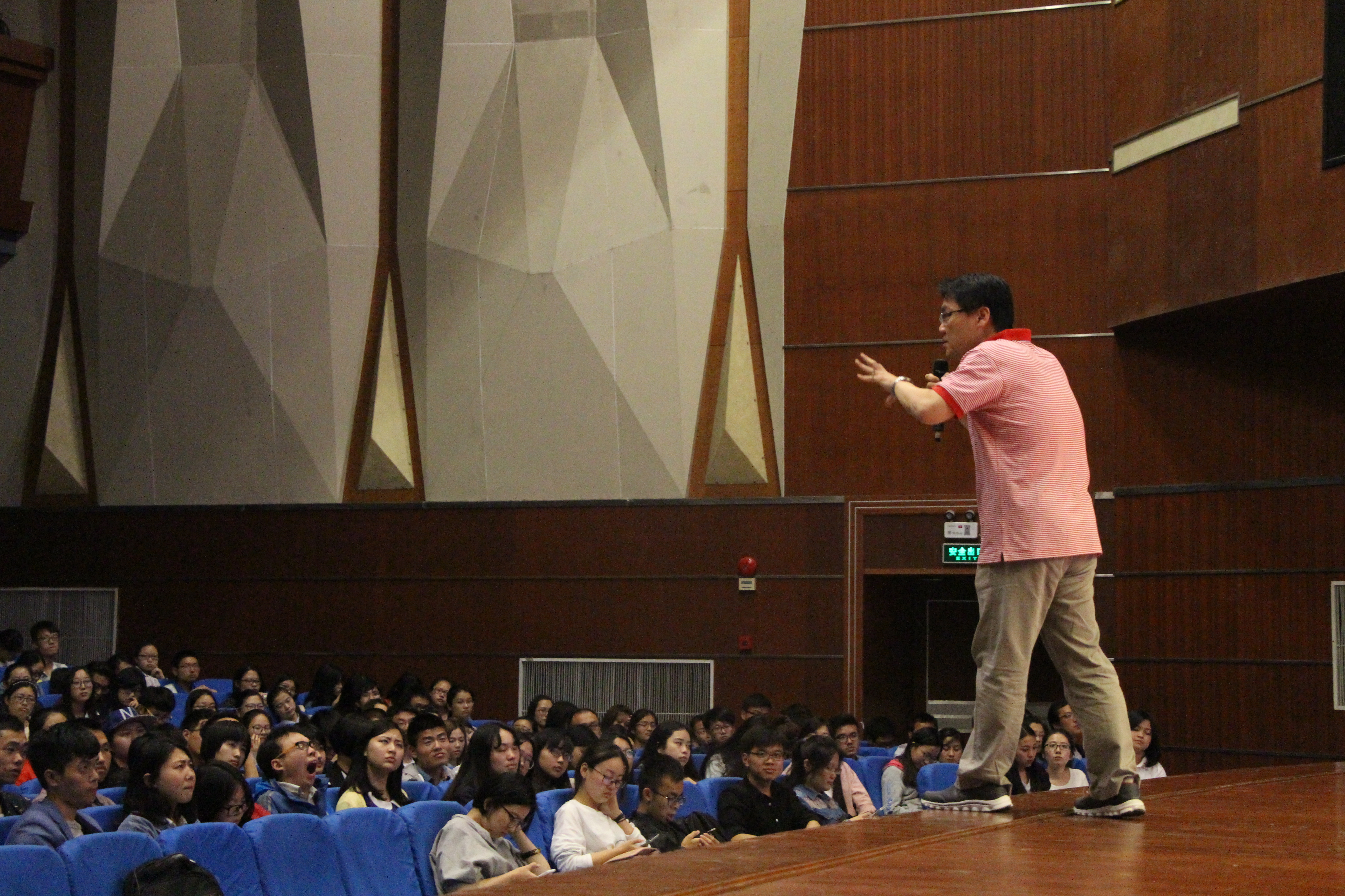 林正疆先生自称永远是二十五岁的学长。他的演讲主要从三个方面展开,分别为说服、谈判、辩论三种沟通方式,语言的艺术以及独立思考的价值。首先,他引导同学根据沟通双方筹码的分配情况来判断自己所面临的沟通环境,在理解他人话语以及发现其利益导向的基础上控制沟通方向。接着,林学长谈及语言的艺术,他认为说话要“三分褒七分谏”,抓住问题的本质,灵活运用语言来达到沟通目的。最后,林学长着重强调了独立思考的价值。他表示,世上没有任何一件事是理所当然、无需思考的,并告诫同学们,任何想法观念的形成都应基于自己缜密辩证的思考。林学长现任职台湾昭昀律师事务所,他从律师职业的角度为同学们剖析了部分社会现状,引用了大量生动的案例,语言幽默风趣,内容发人深省,与同学互动热烈,现场掌声不断。