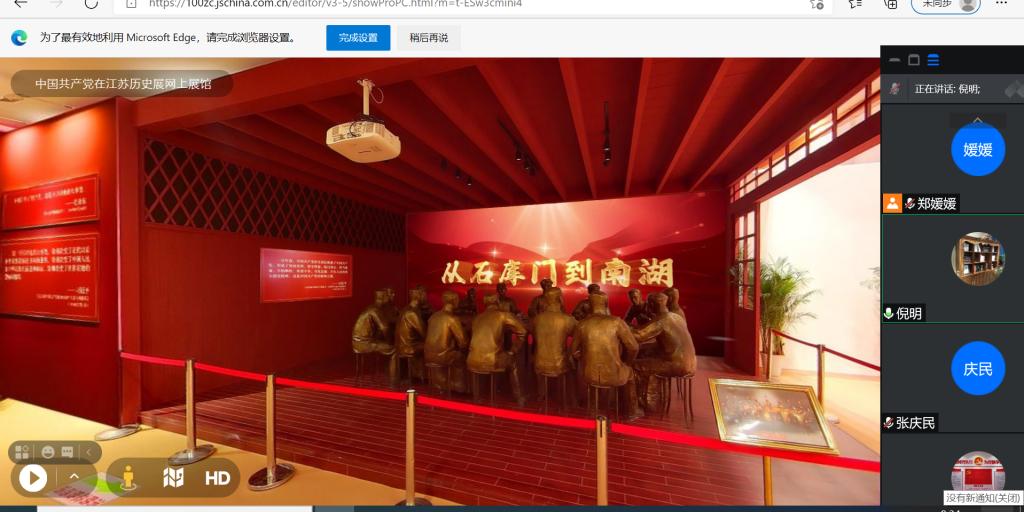 网上展馆以中国共产党在江苏波澜壮阔的奋斗历程为主线,通过360°VR全景进行数字化复原,把江苏丰富的党史资源,活化为可听可看、可读可感的网络传播产品,打造永不落幕的网上党史教育基地。与会同志结合工作实际,积极交流学习体会。