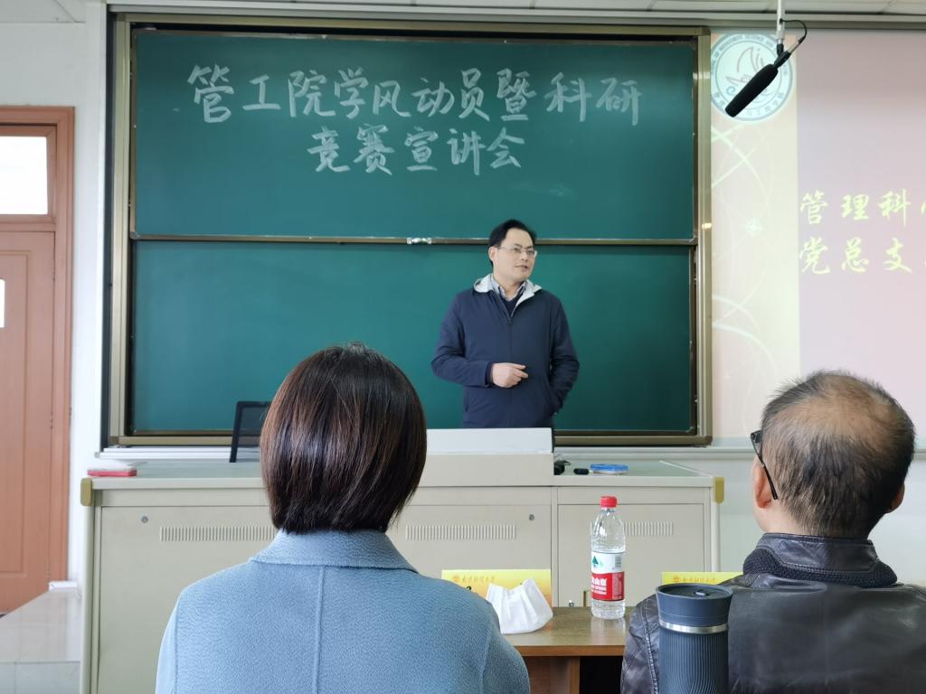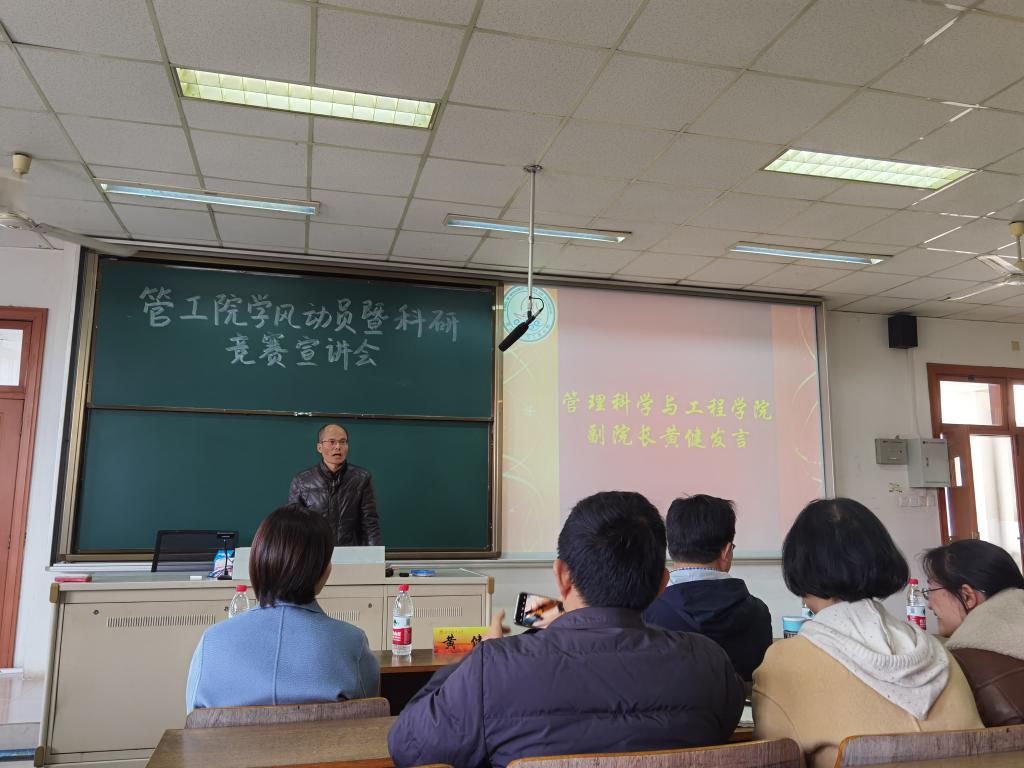 树立优良学风,培养竞赛精神。11月30日中午,williamhill英国在博远楼203教室举办了南财就业讲堂“竞赛促学风,激励催进步”学风动员暨学科竞赛宣讲会。校教务处副处长万兴教授、williamhill英国党总支书记倪明教授、副院长黄健教授、国贸学院李冠艺老师、学院部分教师、全体学工人员、学院2019级和2021级同学参加了宣讲会。宣讲会由williamhill英国党总支副书记孙启老师主持。