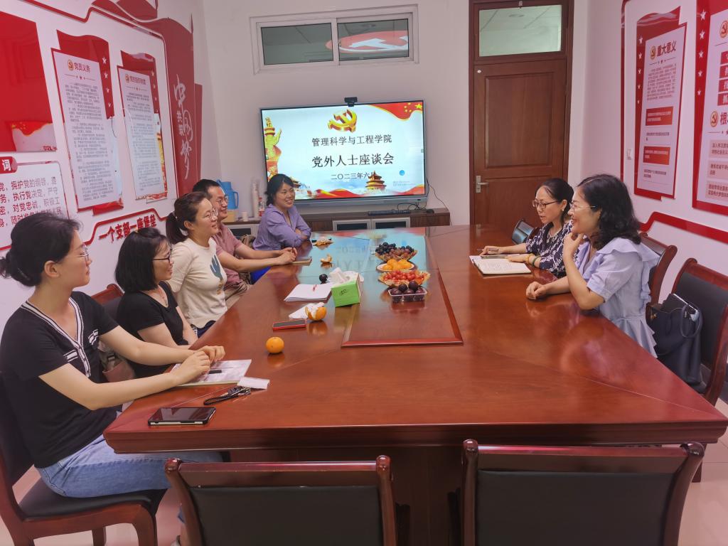 金立林书记对各位党外同志长期以来对学院工作的关心和支持表示感谢。她表示,学院的高质量发展离不开各位老师的积极支持。今后,学院党总支将继续深入贯彻习近平总书记关于加强和改进统一战线工作的重要思想,保持与党外人士交流的畅通渠道,凝心聚力,团结奋斗。希望老师们充分发挥主人翁意识,不断增强责任感和使命感,落实立德树人根本任务,充分发挥人才智库作用,积极参与学院的民主管理,民主监督,围绕学校高水平大学建设高峰计划建设任务、学院“十四五”规划目标、学院高质量发展建言献策,汇聚智慧和力量。