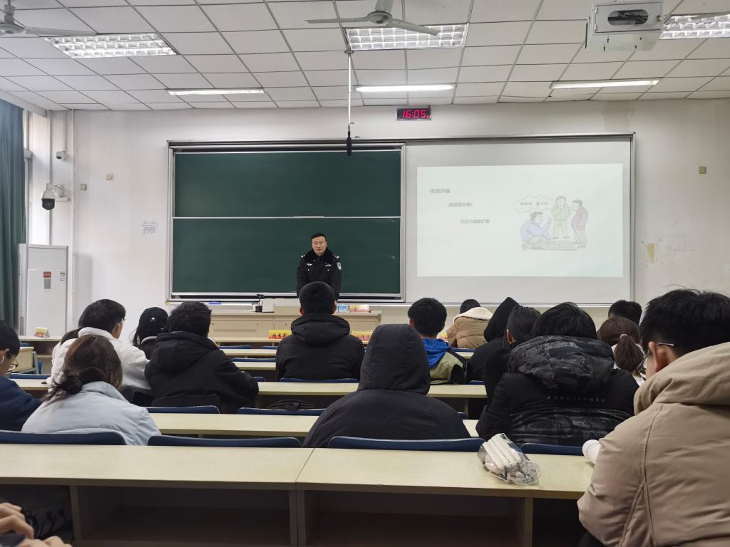 宣讲会上,曹杰警官从亲身经历的电信诈骗案例出发,为同学们分析了网络电信诈骗的现状和特点,犯罪分子的典型作案手法和大学生容易上当受骗的几种情境。他重点讲解了防范电信诈骗技巧和应对方法,重点介绍了冒充交换生换钱、冒充学校工作人员进行敲诈勒索等针对大学生群体的新型诈骗手段,提醒同学们如遭遇诈骗做出理智判断、防止上当受骗。