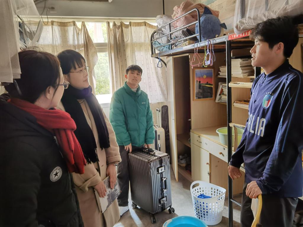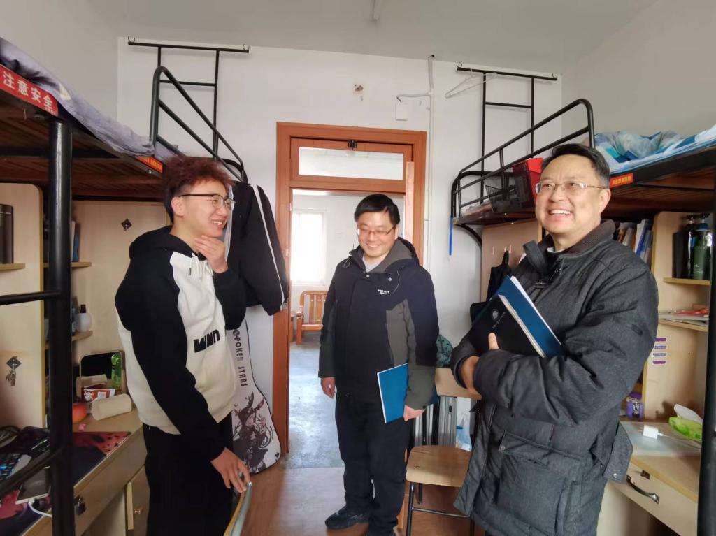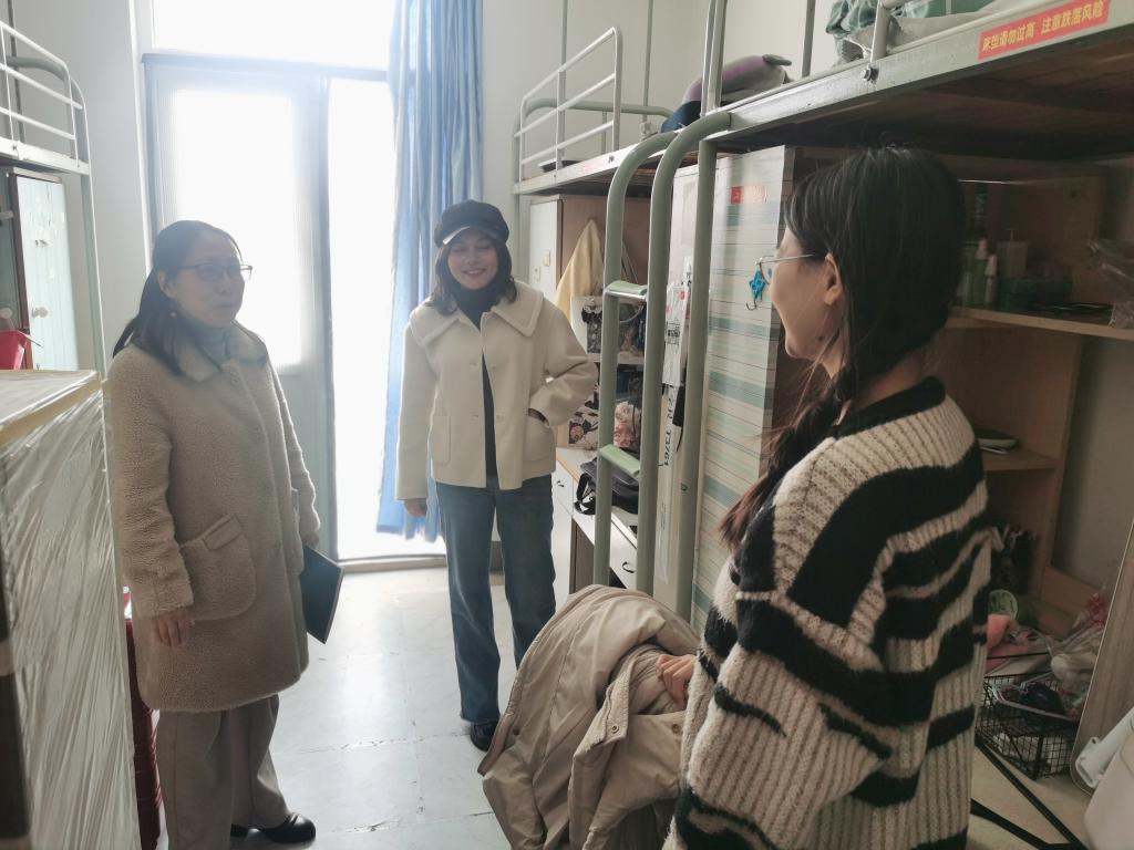 走访期间,领导老师们与同学们亲切交谈,详细询问了同学们假期的学习生活情况,引导同学们及时调整状态,养成良好的作息习惯,以更加饱满的精神和热情迎接新学期的到来。学院领导在宿舍还重点检查了可能存在消防安全隐患的部位,叮嘱同学们“安全无小事”,一定要严格遵守公寓管理规定,增强安全防范意识。