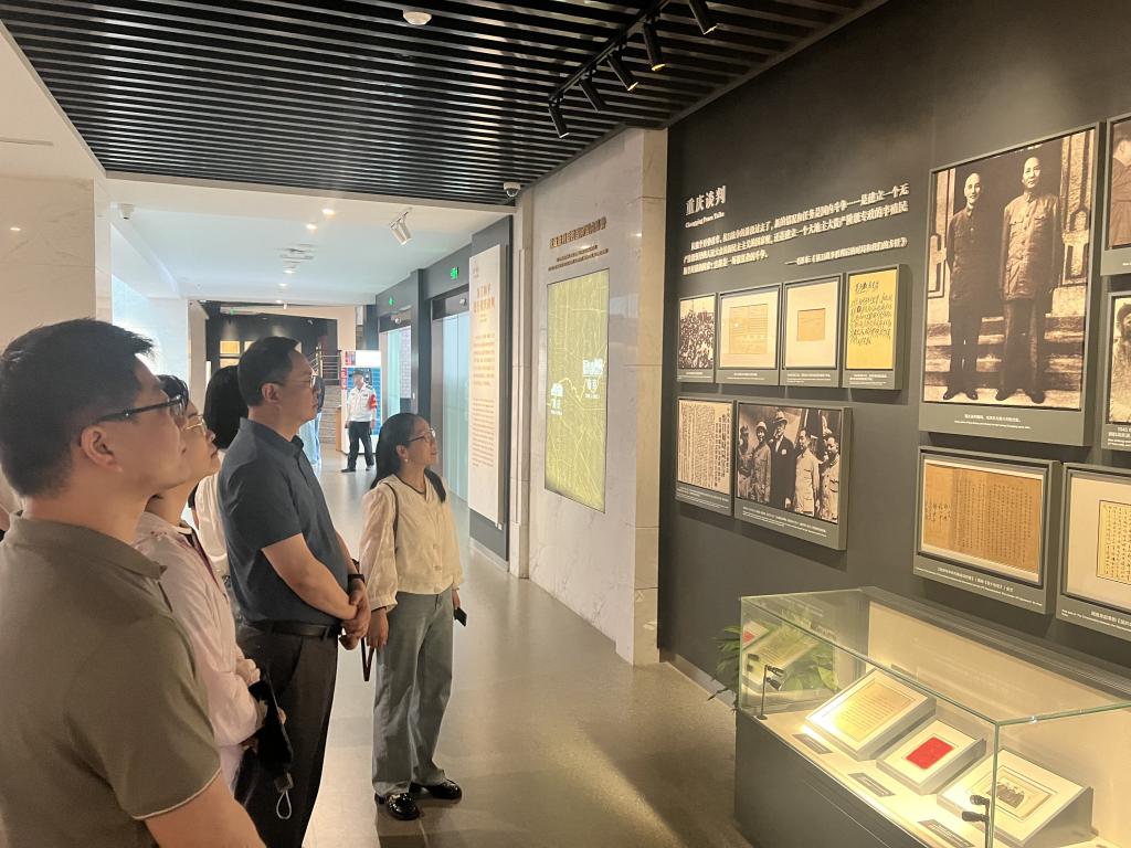 在金立林书记带领下,党员们认真观摩丰富的实物档案及文史资料,深入了解国共谈判时期先辈们的光辉事迹,感受先辈们为民族解放而不懈努力的革命精神。一段段视频指引着艰难谈判之路,一张张照片诉说着往日光辉岁月,一件件伟人旧物展现着清正廉洁本色。