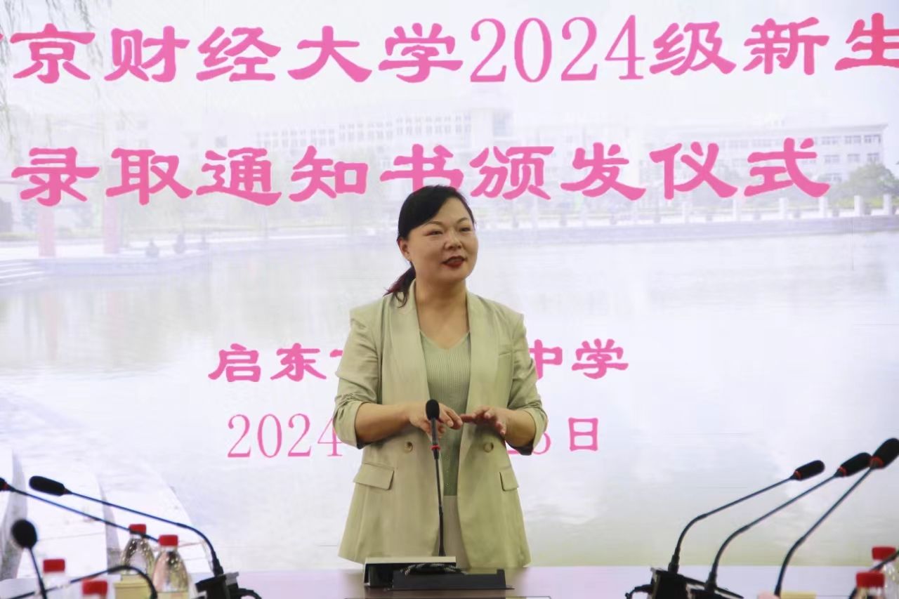 徐辉书记代表汇龙中学向南财的领导们表示诚挚的感谢,向在座的学生和家长表示祝贺。他深情寄语即将开启南财新生活的同学们,无论将来是扶摇直上九万里,事业长虹节节高,还是承欢父母膝下,归来建设家乡,一切都是最好的安排。他感谢市委市政府、市教育体育局等上级部门对汇龙中学各项工作的关心和支持,并表示汇龙中学将继续用优异的成绩和实际行动,为启东教育的高质量发展做出应有的贡献。