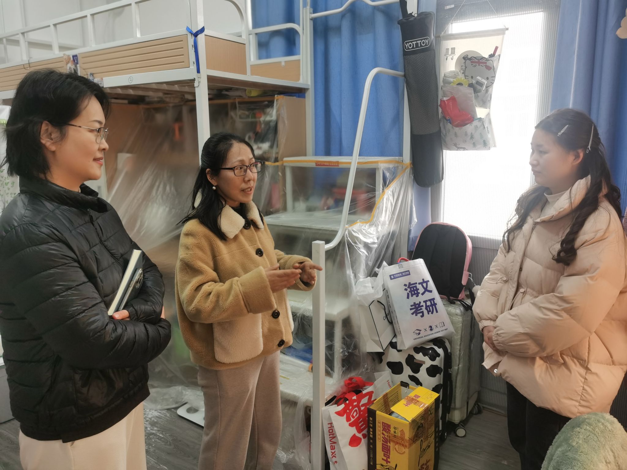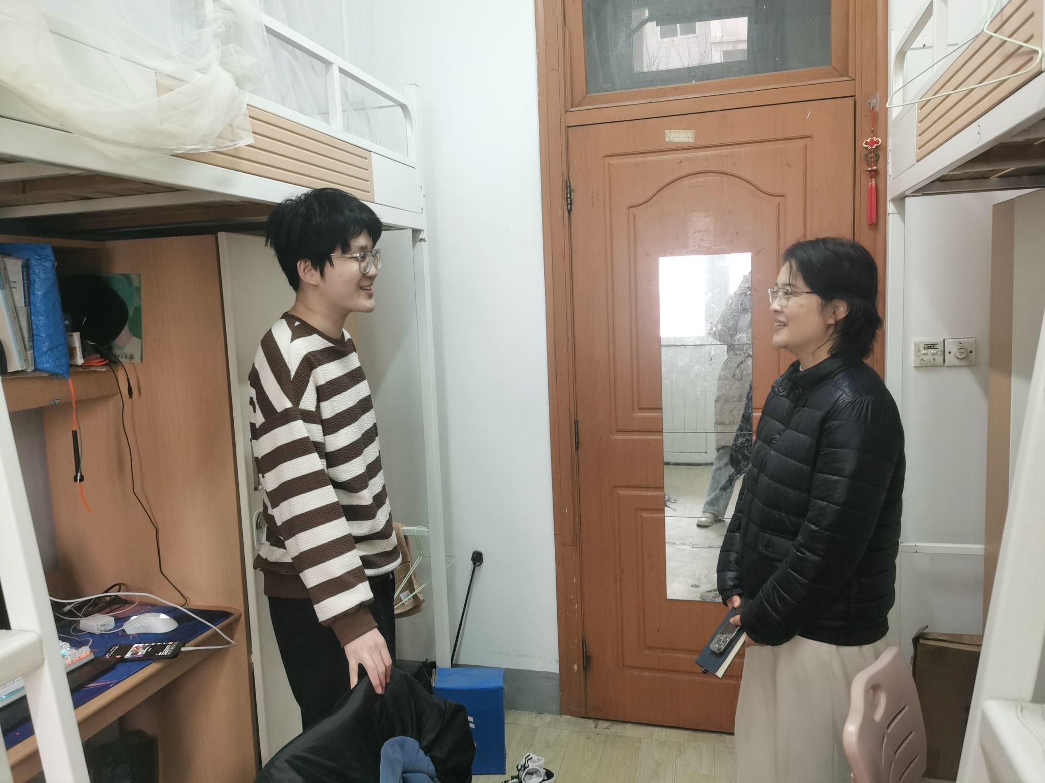 走访过程中,学院领导与学生们亲切交谈,关切询问了假期的学习生活情况,鼓励学生尽快调整状态、合理规划时间,以饱满的精神迎接新学期的挑战。期间,学院领导还重点检查了宿舍消防安全设施、用电规范及卫生环境,强调“安全是学习生活的前提”,要求同学们严格遵守宿舍管理规定,杜绝违规电器,共同营造安全、整洁的居住环境。