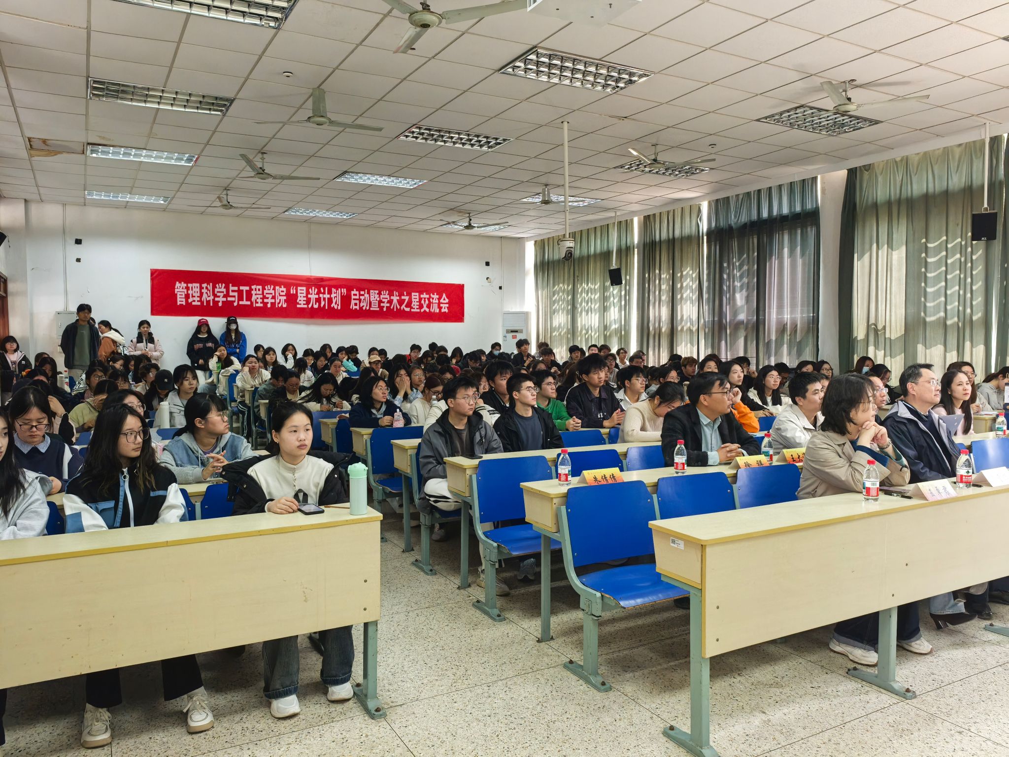 4月2日,williamhill英国于仙林校区德济楼Z2-101教室举办“星光计划”启动暨学术之星交流会。学院党委书记金立林、院长刘军、副书记王卓君、副院长孟秀丽、副院长张正勇、管理科学系主任王月虎、质量管理工程系主任李晓鹏、质量管理工程专业2024级班主任徐祥、教工党支部书记杨帆、青年教师李文丽、“星光计划”学生代表以及2024级全体同学参加会议,会议由副院长张正勇主持。