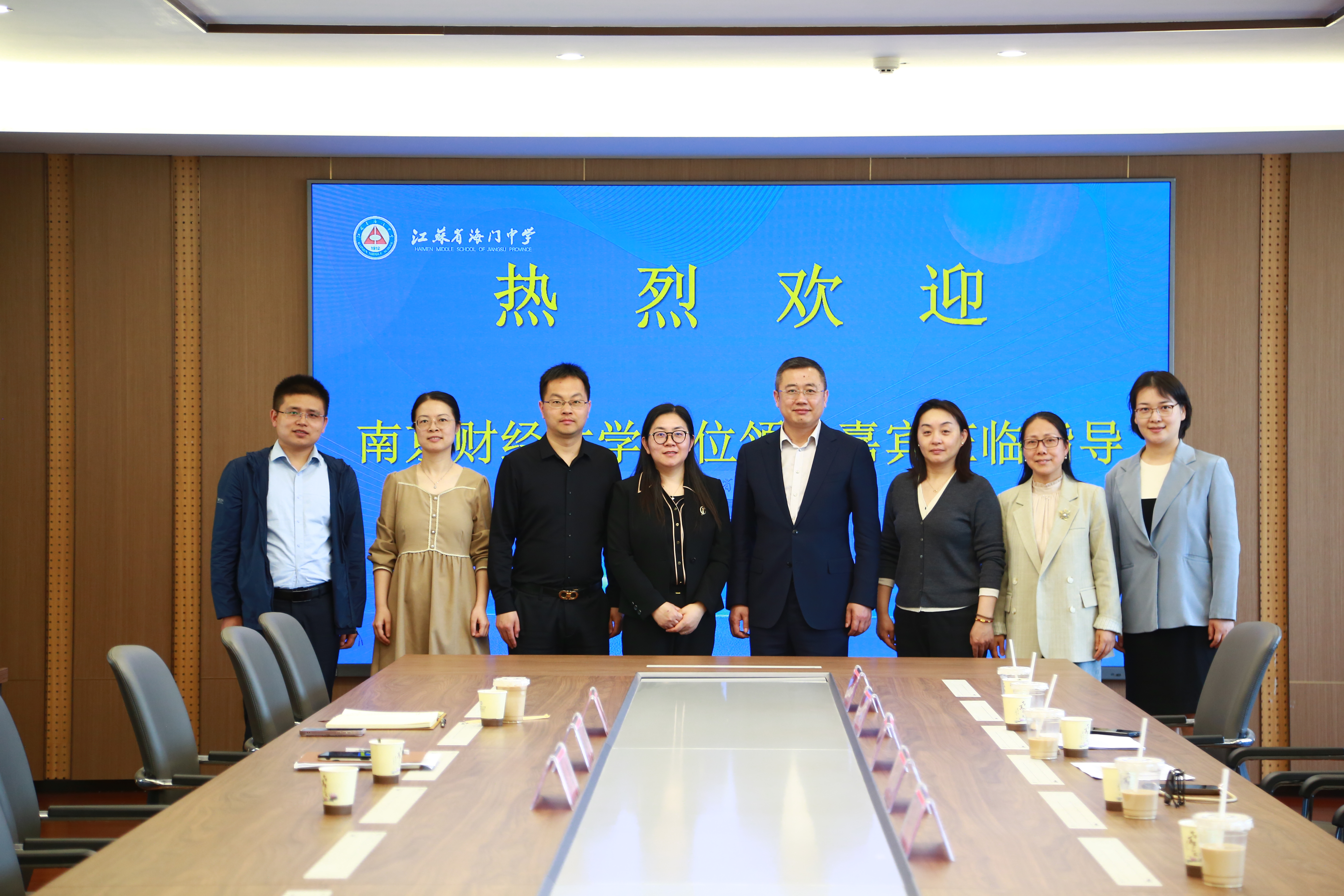 和海门中学领导合影