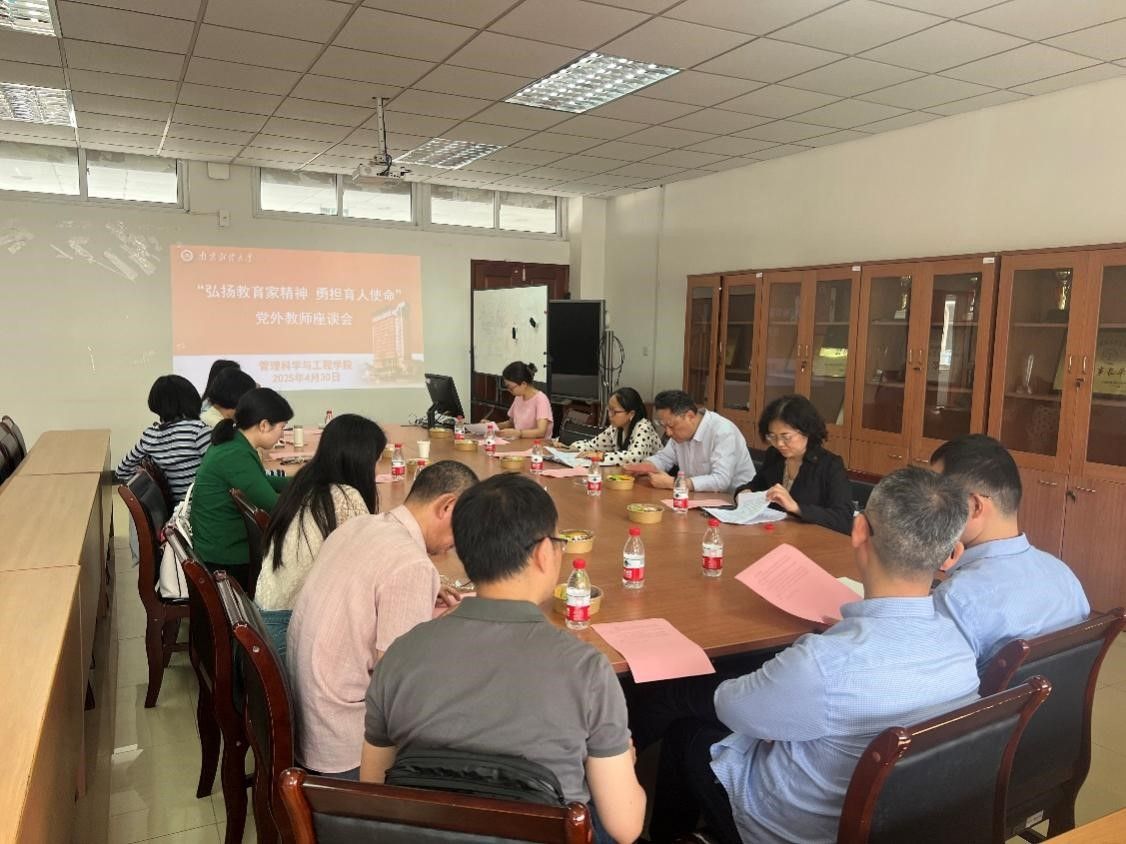 会上,学院党委统战委员、副院长孟秀丽领学了《中共中央国务院关于弘扬教育家精神加强新时代高素质专业化教师队伍建设的意见》。随后,与会代表一同观看了“人民教育家”国家荣誉称号获得者卫兴华事迹视频。最后与会代表就“弘扬教育家精神,勇担育人使命”展开研讨,并结合各自经历,从人才培养、科学研究、社会服务等方面为学院发展建言献策。