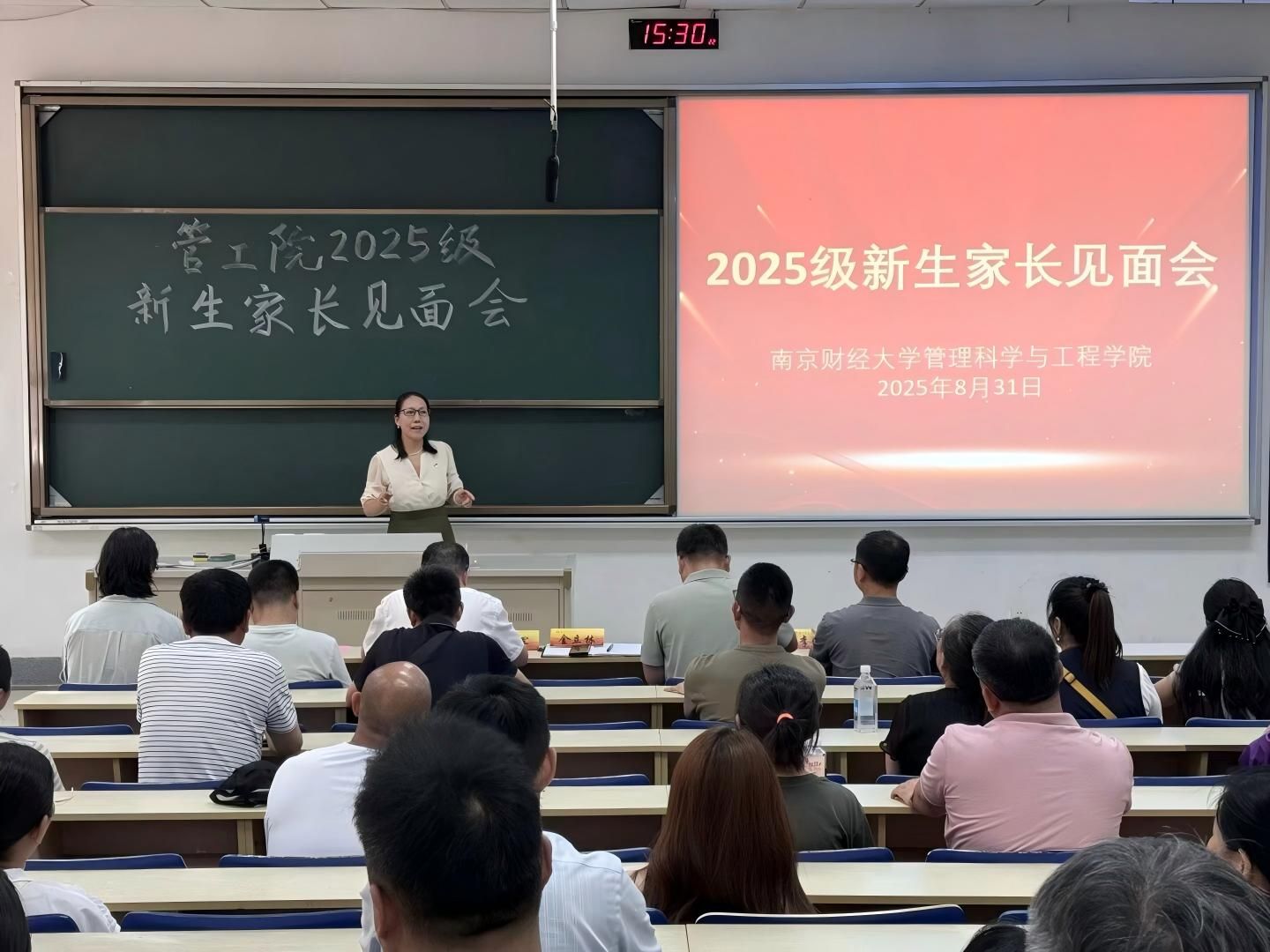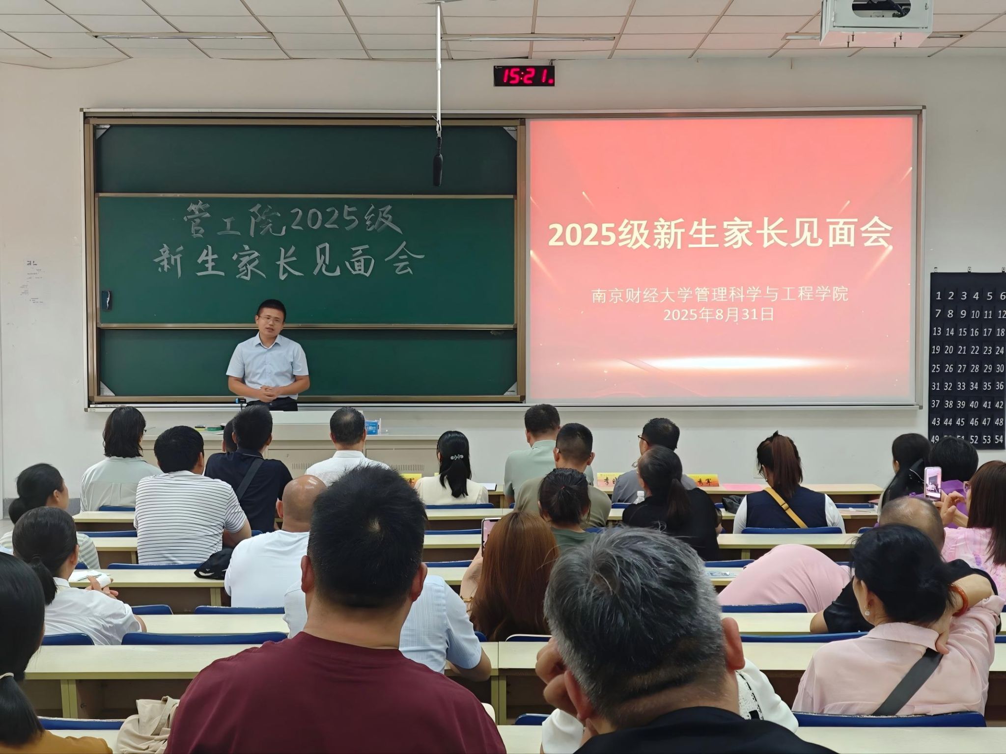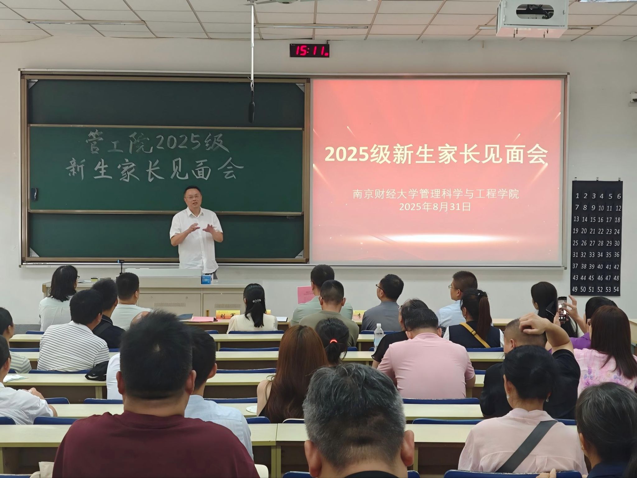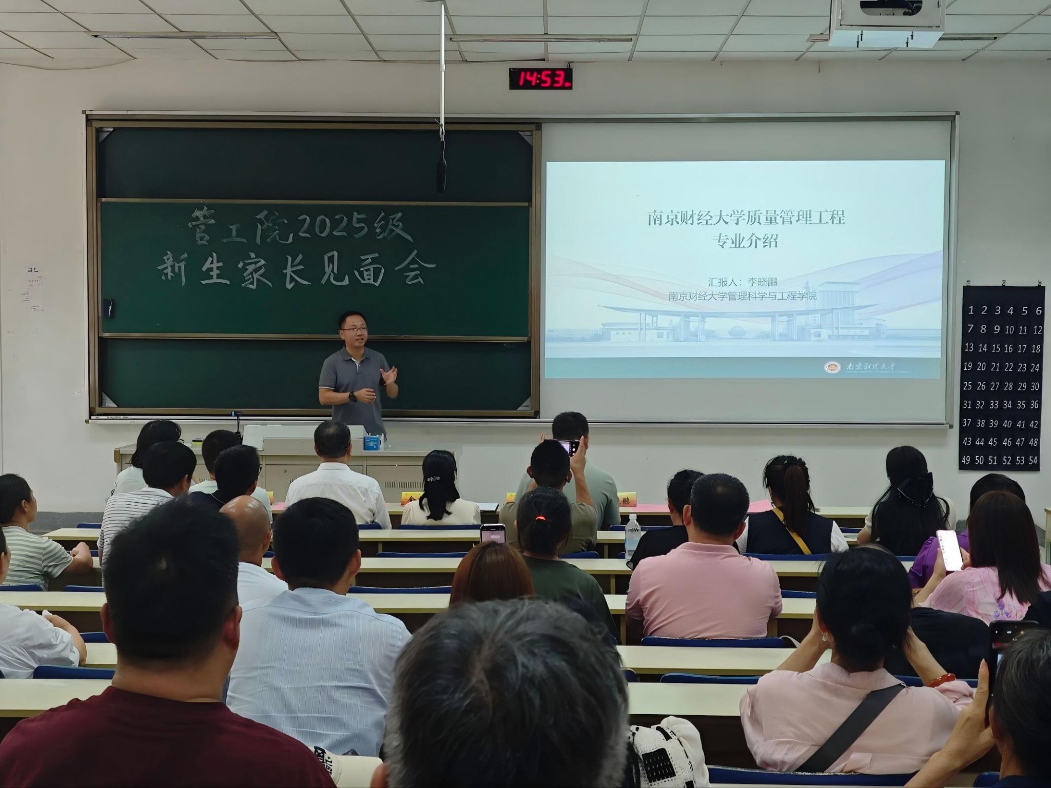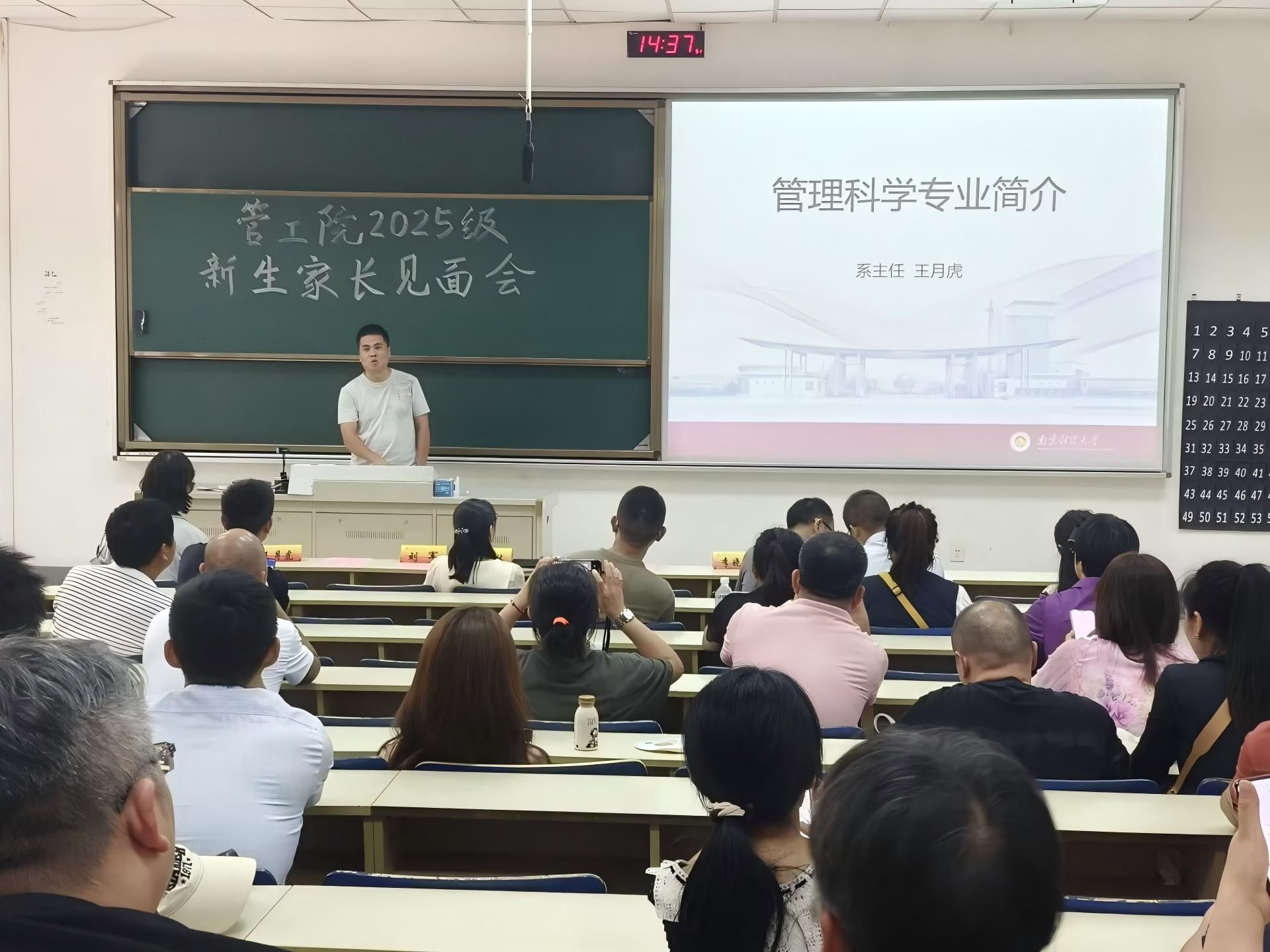 随后,系主任分别介绍了学科的特色、学习内容、就业方向与未来发展等内容。管理科学系王月虎老师从“毕业干什么、四年学什么、管科是什么”三个方面对本专业进行了介绍。质量管理工程系李晓鹏老师介绍了专业的建设发展情况,学院开设的特色人才培养项目“星光计划”——旨在培养本科学生将理论与实践相结合的思维方法和创新能力。其后新生辅导员陆秀军老师介绍了学生日常管理和实践创新培养情况,并希望加强家校合作,共同培育学生成长成才。