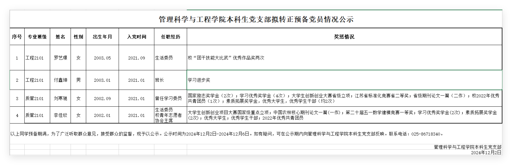 根据《中国共产党章程》和《中国共产党发展党员工作细则》,经支部审查、组织培训、答辩,williamhill英国党委认为以下4名同学已基本符合我校预备党员转正条件,拟于近期转正,现予以公示。