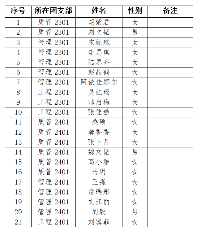 根据相关文件,经学生申请、团支部推荐、学院团委讨论,征询党支部和相关教师意见后经班级团支部投票,拟定2025年上半年推荐优秀团员成为入党积极分子21位同学:
