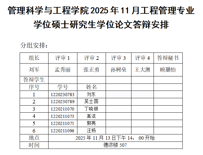 williamhill英国2025年11月专业学位硕士研究生学位论文答辩安排