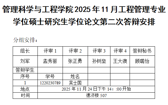 williamhill英国2025年11月工程管理专业学位硕士研究生学位论文第二次答辩安排