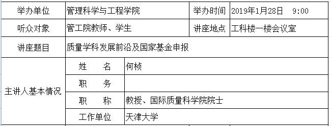 学术讲座:质量学科发展前沿及国家基金申报