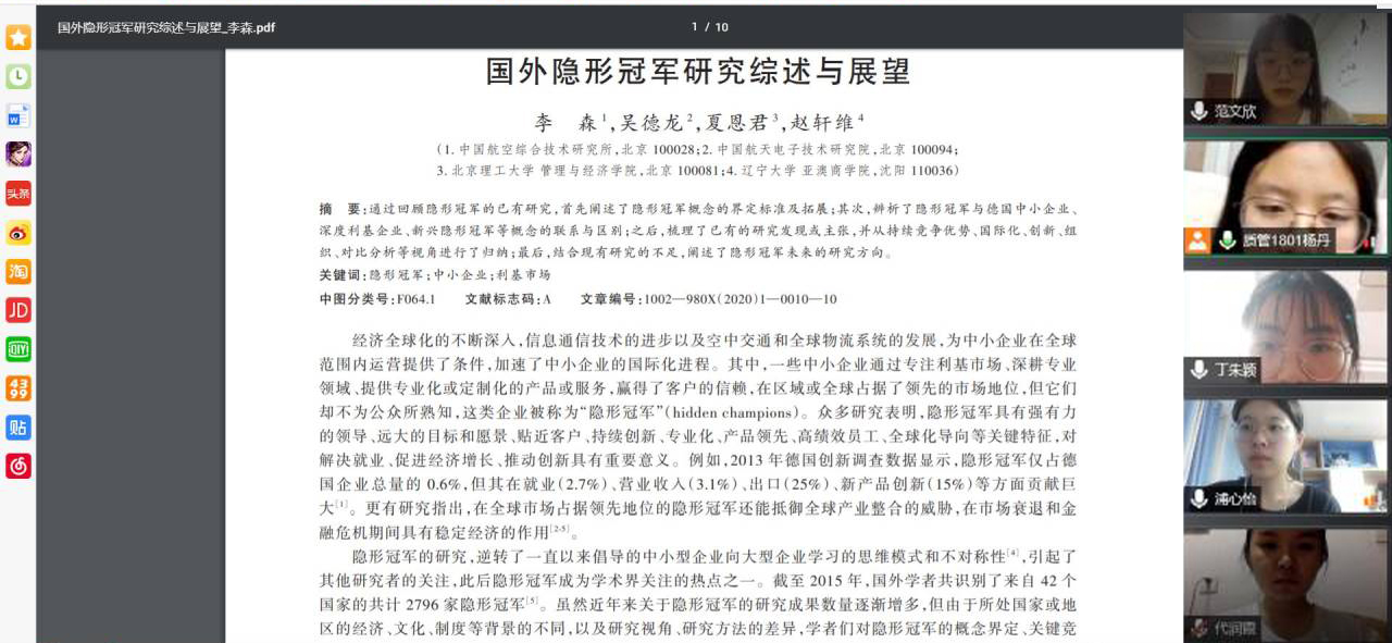 什么是隐形冠军企业?隐形冠军企业是指在国内或国际市场上占据绝大部分份额,但社会知名度很低的中小企业。7月29日,为进一步提高对隐形冠军企业的认知,探究隐形冠军企业暑期实践小组在线上开展了交流活动。