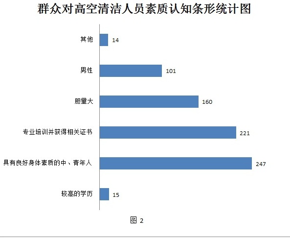 首先,小分队成员通过查找资料和新闻,消除了一些误区,对高空清洁工这份职业形成了初步的了解。小分队成员在实践调查过程中,越来越觉得“蜘蛛人”是一项十分危险的工作,对员工安全措施和员工个人高超的专业素质是非常重要的。接着,小分队成员走进群众,关注群众对这类人群的看法与认知,人们或多或少对“蜘蛛人”有所了解,但是论起是否遇见过,大多数都表示并未在生活中见过高空清洁工。小分队成员不禁感慨高空清洁工的默默无闻。在问卷访问过程中,小分队虽然也遭到过冷酷对待,但仍有热心人的帮助,加上小组成员不言放弃,最后本组收回了350多份有效问卷,同时更多的感受是社会中还是热心人占多数。幸运的是,小分队在问卷调查期间遇到了两位从业者,并对他们进行了采访,两位都十分耐心地回答了小分队成员的问题,小分队成员对他们很是感激。最后,我们联系了南京亚宇保洁有限公司负责人——王先生,王先生在了解到小分队的意图后,友好的接待了小分队成员,并答应了小分队成员的采访要求。