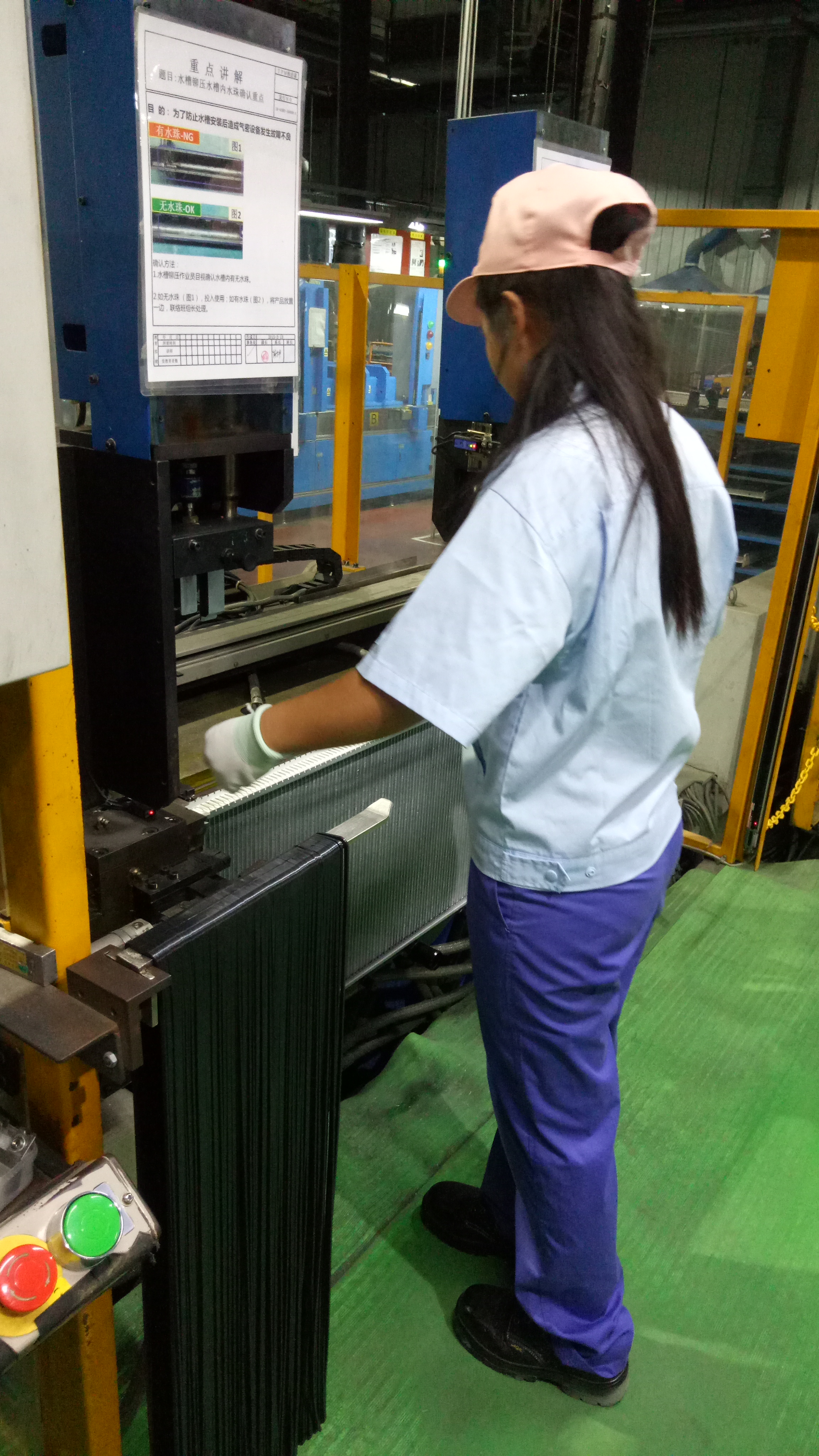 为了更贴切地了解工程师的工作,蒲海鸿工程师亲自带领小分队成员参观了他工作的场所。沿途经过电子无尘车间、注塑车间、热胶车间等。在热胶车间内,小分队成员们在蒲海鸿工程师的指导下完成了几个汽车散热器的水槽铆压的工作,在参观过程中,成员们了解到散热器虽然只是汽车的一小部分,但生产出的成品却要经历数十个流程。