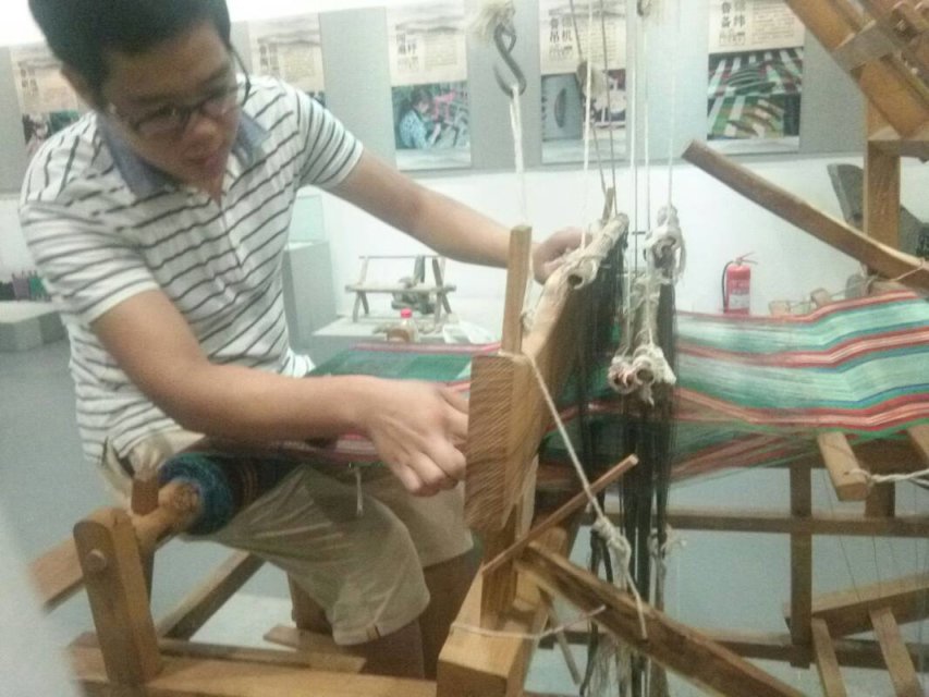 最后,在胡先生的热情教导下,同学们亲身体验了鲁锦的传统化生产。有队员表示对此感到十分新奇,仅仅是操作机杼的一部分便让人体会到了鲁锦制作的繁琐和低效,却又因为它的精妙绝伦而折服。