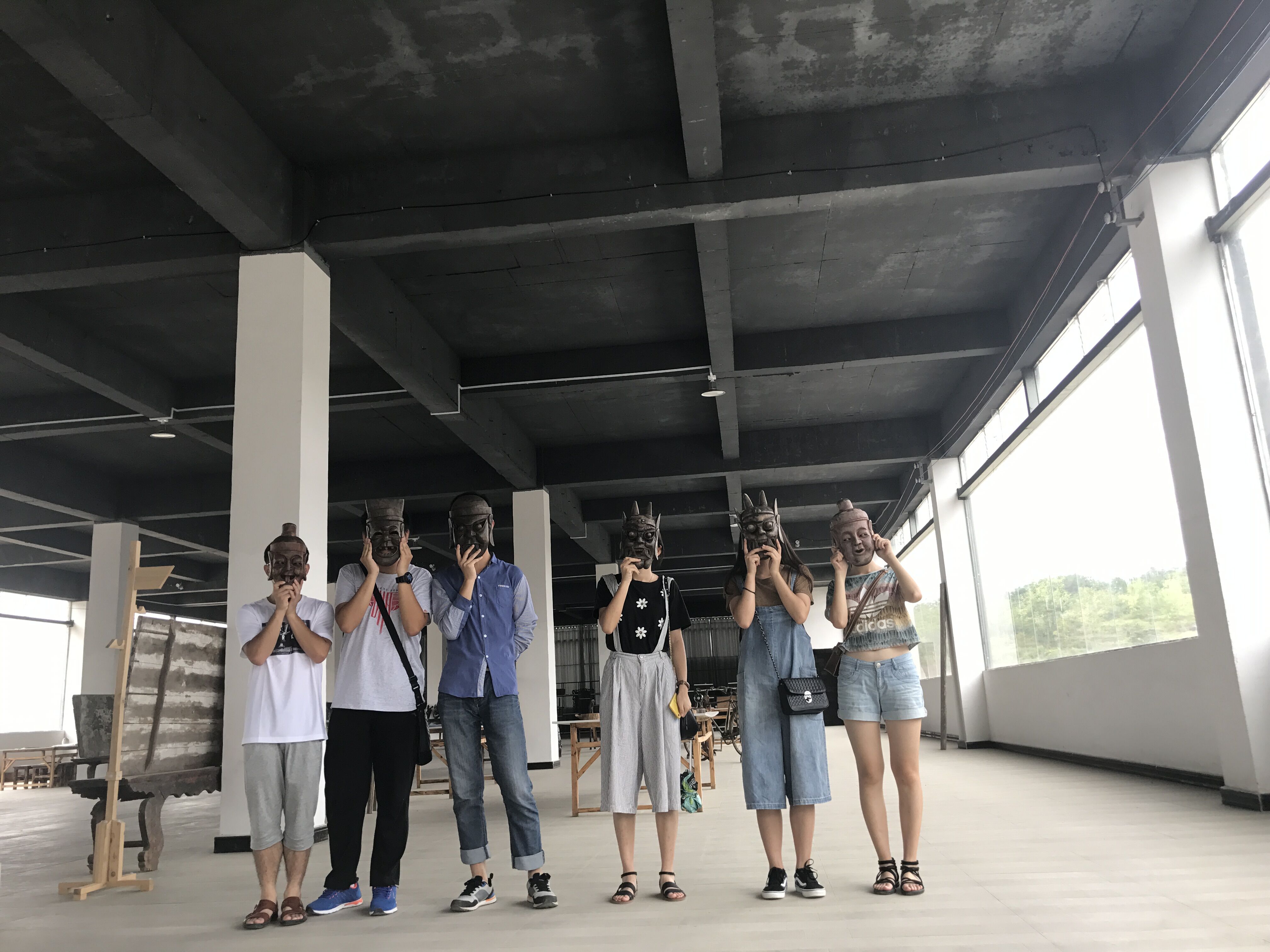 贵州省收藏家协会常务理事、美术家协会会员、傩缘旅游文化公司董事长冉勇带领我们参观公司。在观察傩戏面具的制作、傩面具成本展览以及傩面具衍生产品的生产过程中,董事长冉勇向小分队成员介绍了傩面具的十五种人物代表和傩戏的种类,并引领成员们观赏了更多与傩戏文化相关的古董文物,包括书物、蜡染、傩面具雕木和土家族特色物品等。整个展厅仿若一个小型的历史博物馆,浓郁的文化气息不断流淌蔓延。