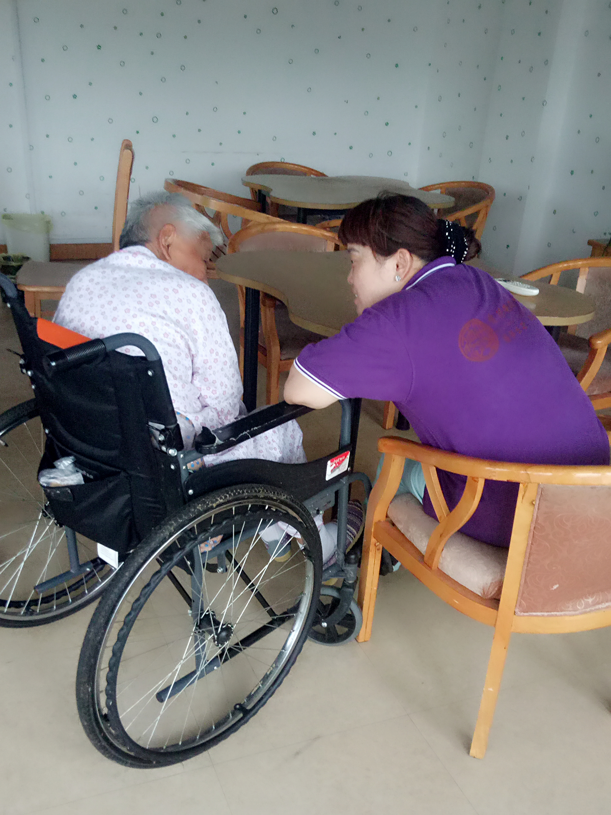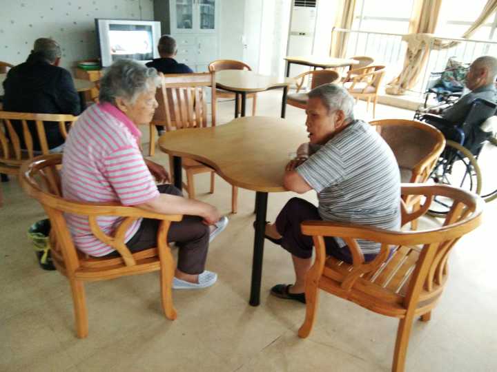 首先,队员们对颐养中心的管理人员进行了访谈。访谈问题主要包括养老院的基础设施和医疗条件、服务人员的招聘任用和工作分工以及养老院未来发展的前景和规划等。在管理人员的详细介绍下,队员们了解到,随着养老问题的日趋严峻,养老院也面临着很多挑战,为了给老人提供舒适的生活环境,所有的服务人员都需持相关的从业资格证上岗,养老院会根据老人的身体状况分配不同的员工照顾。同时,养老院配置了活动室供老人们健身娱乐。接着,队员们分为两组,走访了部分老人的卧室,掌握了颐养中心对老人们饮食起居的安排。最后,队员们参观了活动室。午休后的一部分老人在这里,或聊天,或看电视,或打麻将,轻松悠闲的度过午后时光。队员们与老人们沟通交流,了解他们的身心状况及对养老院的满意度,一位老人表示,自己科学饮食,身体健康,工作人员尽职尽责,照料我们很有耐心。