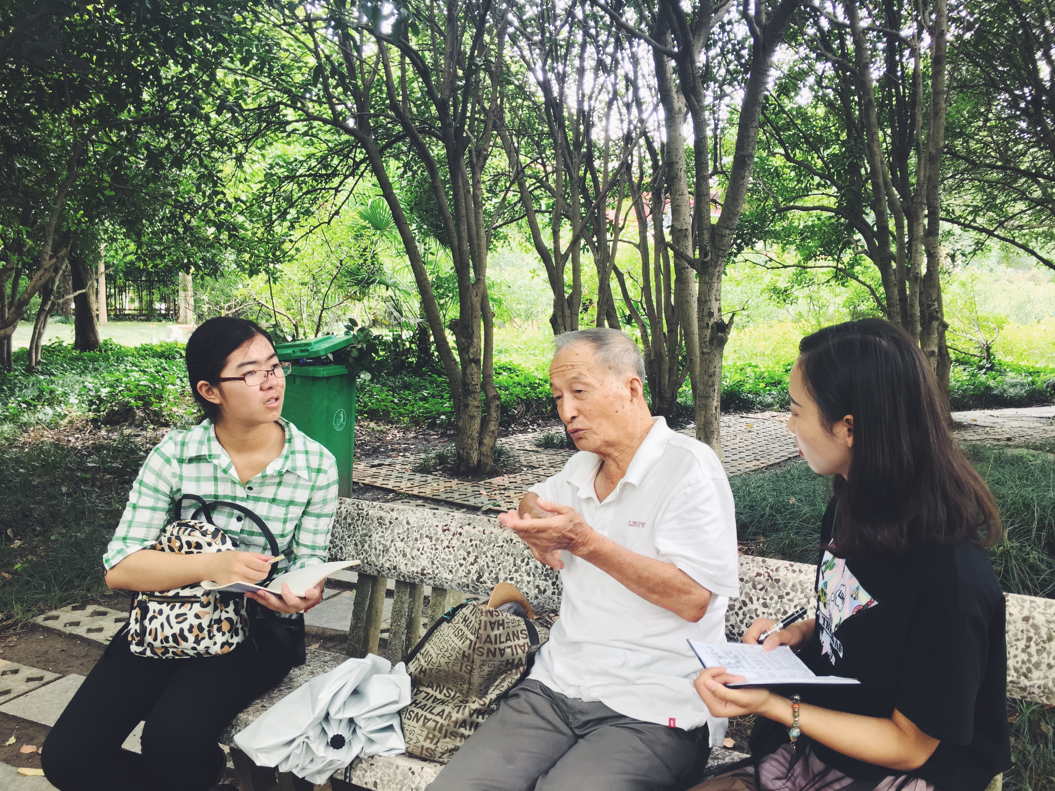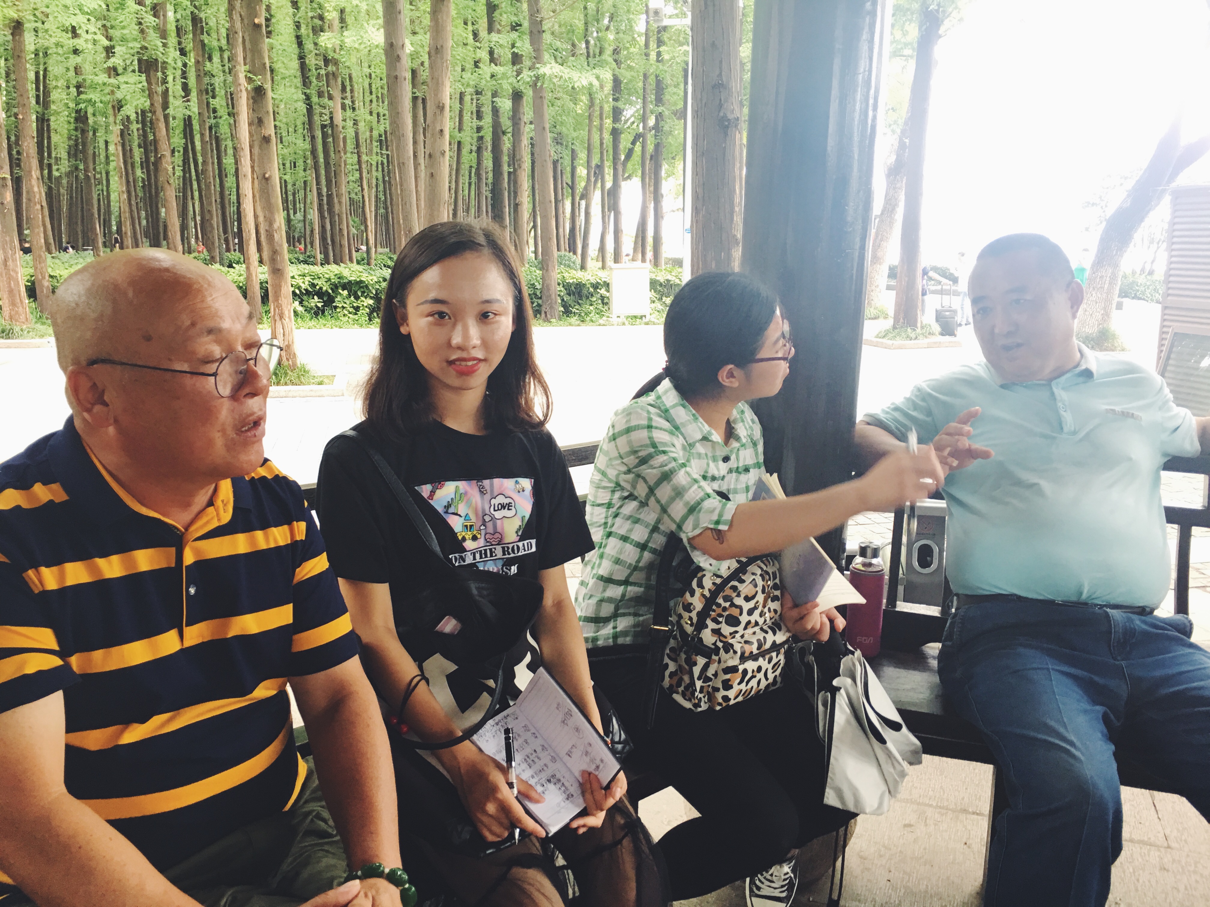 同学们分别在玄武湖公园、夫子庙、白鹭洲公园,对南京本地的居民进行了较为详细的采访。小组针对南京小吃的口感变化、南京小吃对当地人的影响以及对南京文化的影响、南京美食文化的发展等方面,对四个平均年龄在70岁左右的老人进行了采访。