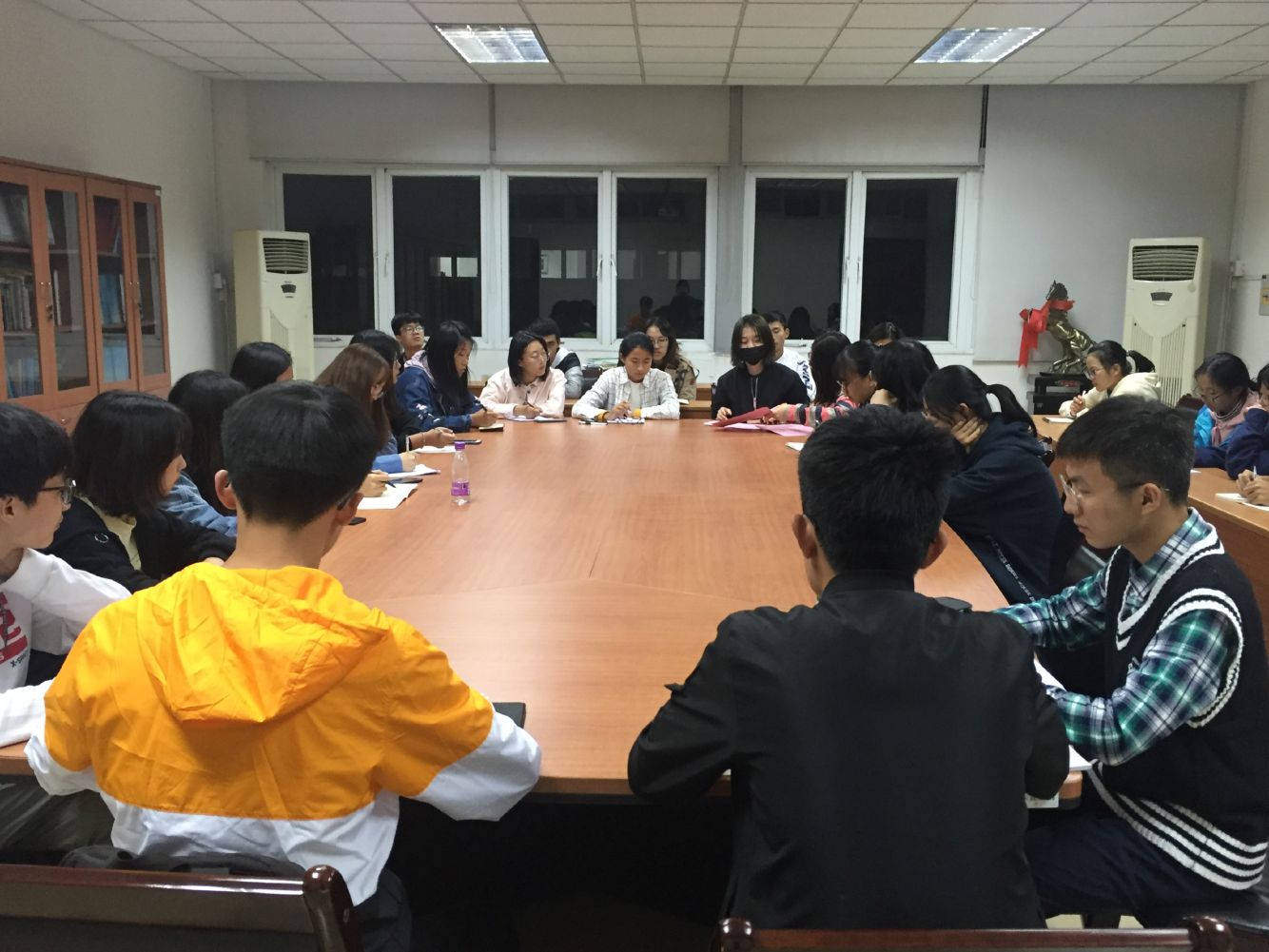 会议开始,各班团支书交流了近期的工作情况,各部门汇报了工作情况,就宿舍风采评比大会和团建活动作出总结。接着李崇副书记要求各班团支书统计各班团员数量、认领团章。随后,卞苏清副书记讲述了关于“智慧团建”组织整顿的事情,希望各团支部高度重视,认真落实。最后,两位副书记详细解答了大家关于智慧团建的疑惑。