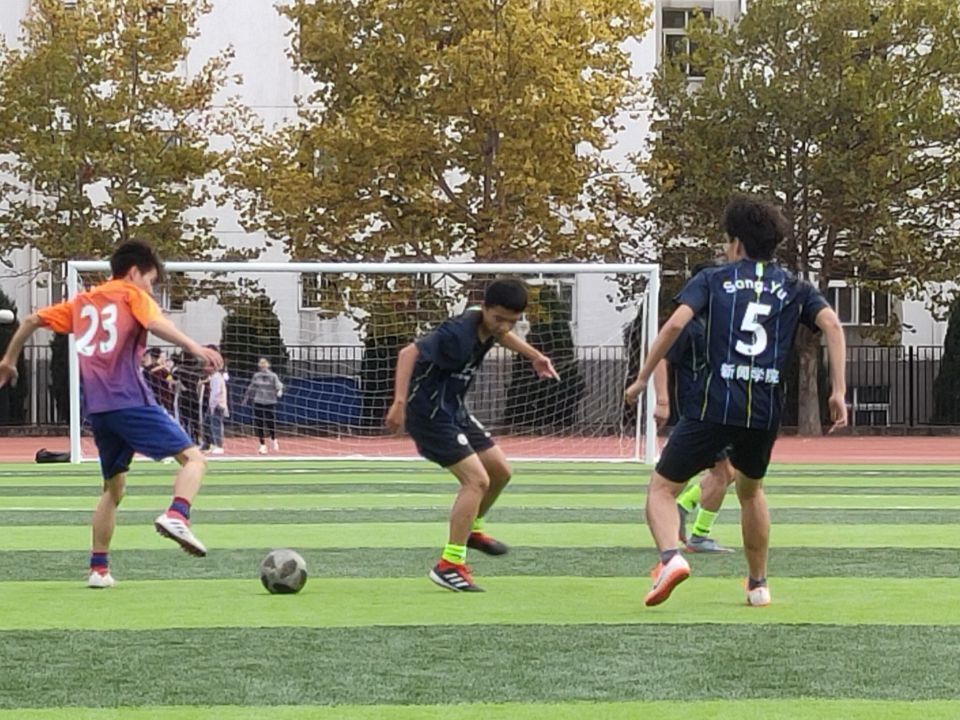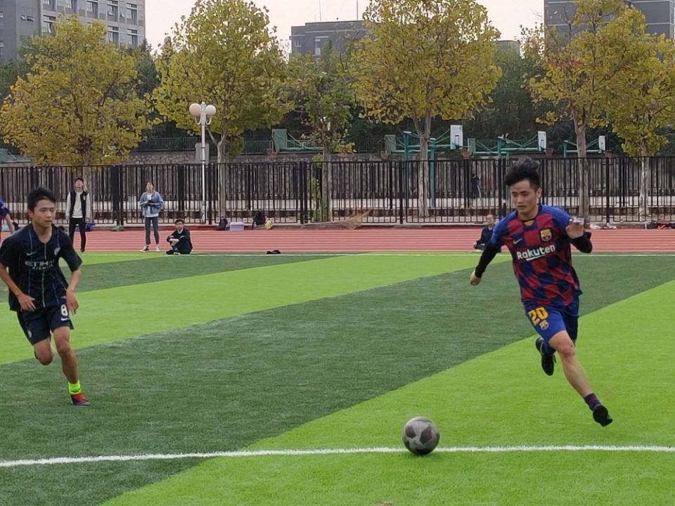 经过短暂休息后,下半场的比赛开始了。管工院球员们斗志昂扬,乘胜追击。比分落后的新闻学院不甘落后,更加谨慎。一边是管工院的猛攻,一边是新闻学院的拦防,场上进入了僵持阶段。这时,9号牛宇霆和23号金鑫攻到新闻学院球门前,牛宇霆踢进一球拿下第二分的同时金鑫不幸被拦截的新闻学院球员绊倒,庆幸的是并没有受伤。此时距离比赛结束已经不远了,但双方依旧坚持不放过任何一丝进攻的机会。在比赛最后一分钟时,管工院20号球员踢进一球,可惜越位并未计入得分。管工院最终以2:0获得此次足球联赛的胜利!