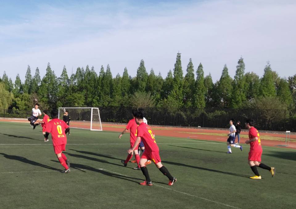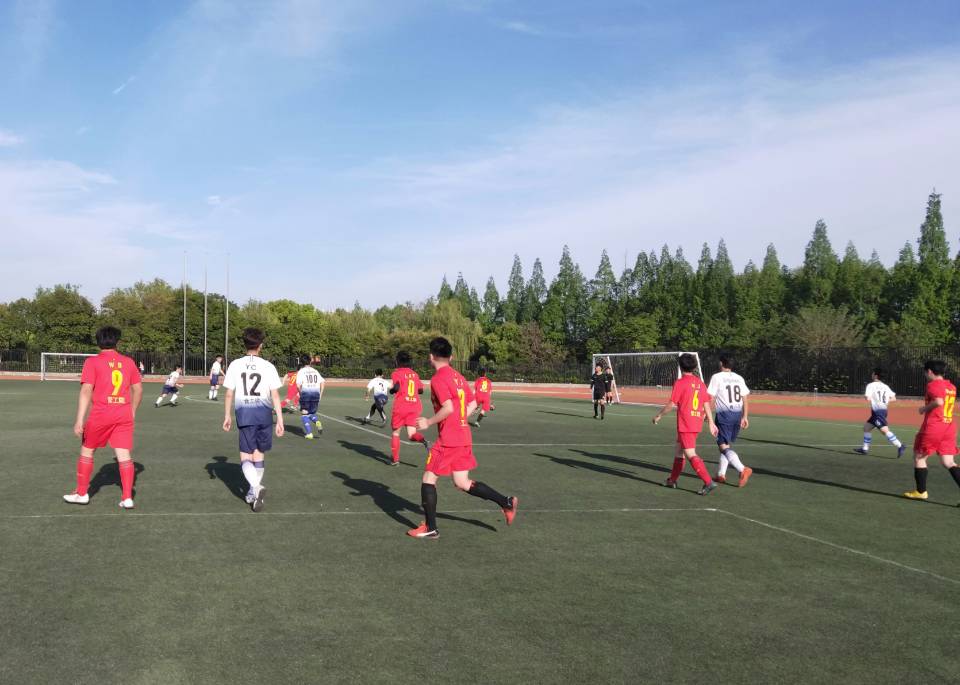 4月18日16:30,英国威廉集团男子足球联赛小组赛赛程第一轮在西苑操场拉开帷幕,对战双方的为着红色球衣的管工队和身着白色球衣的食工队。