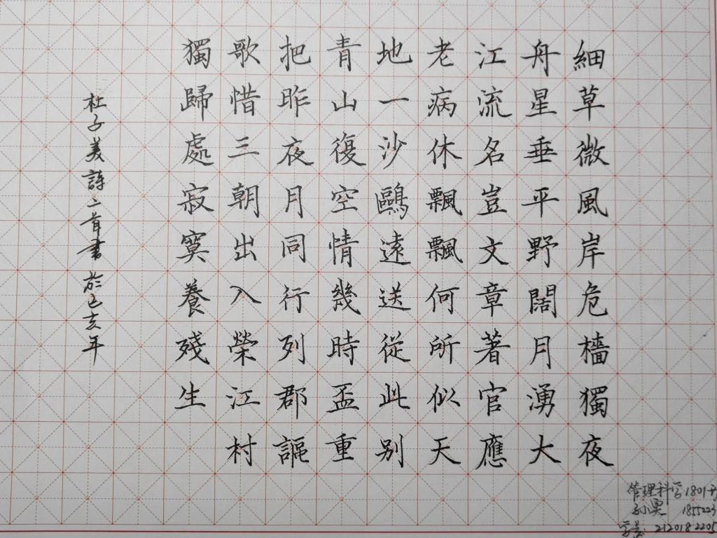 最终,学院评选书法作品组获奖情况如下:管理1701于晓峪书法作品《从军行》荣获一等奖,管理1801孙奥书法作品《旅夜书怀》和管理1801孙慧书法作品《满江红》荣获二等奖,工程1801刘唱书法作品《弟子规》、工程1801吴一凝书法作品《锦瑟》和管理1802 张佳怡书法作品《中庸》荣获三等奖。其余书法作品均获优秀奖。而质管1801 范文欣的支付宝图解说明书获评最佳图解说明书。