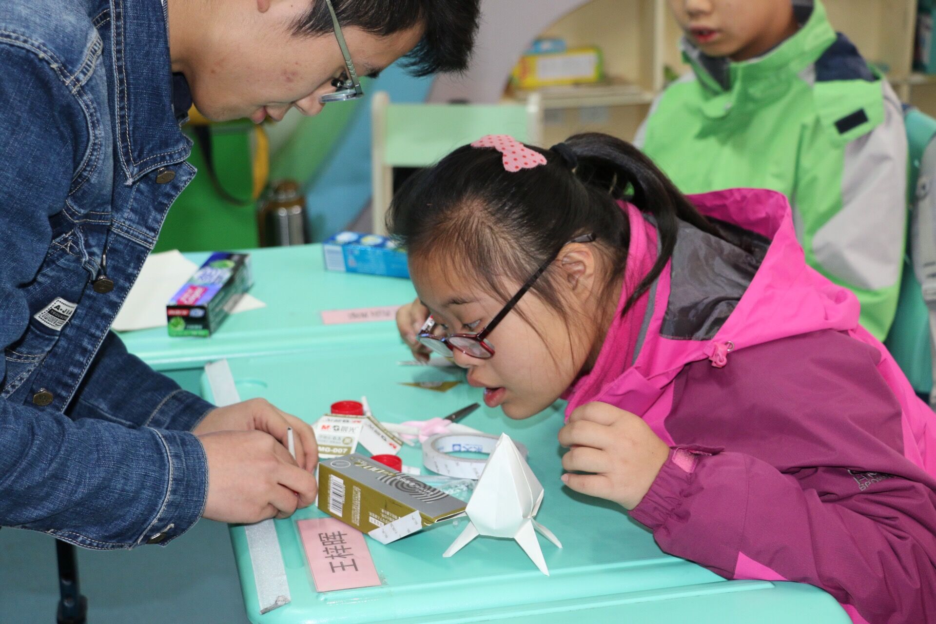 12月6日上午,williamhill英国于南京市玄武区特殊教育学校举办了“趣味手工,智慧成长”的志愿服务活动。特殊教育学校老师和管工院志愿者们带领这里的孩子一起参加了活动。