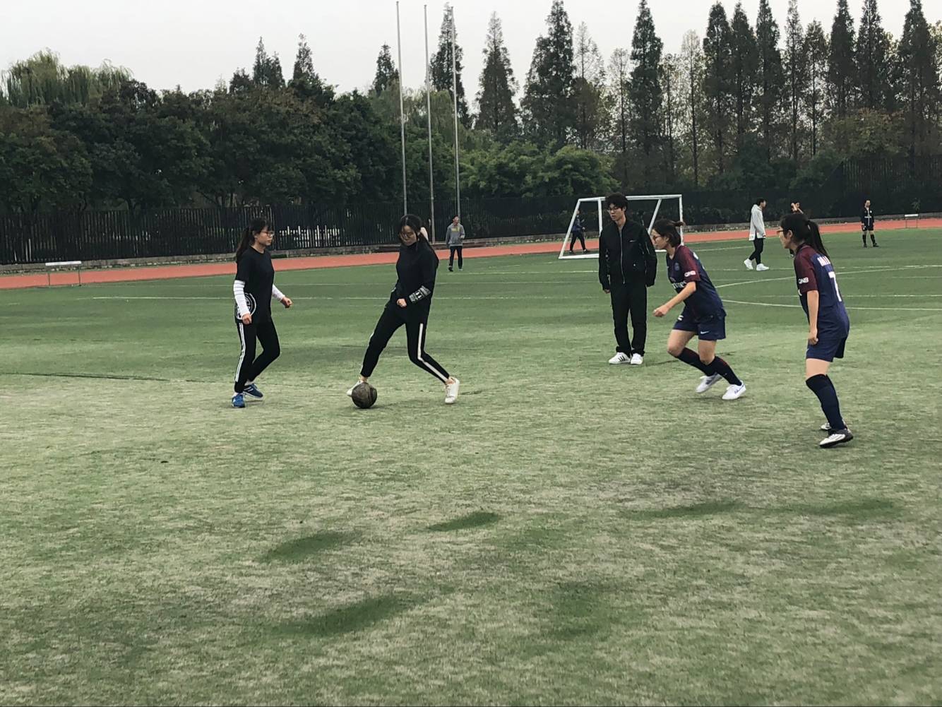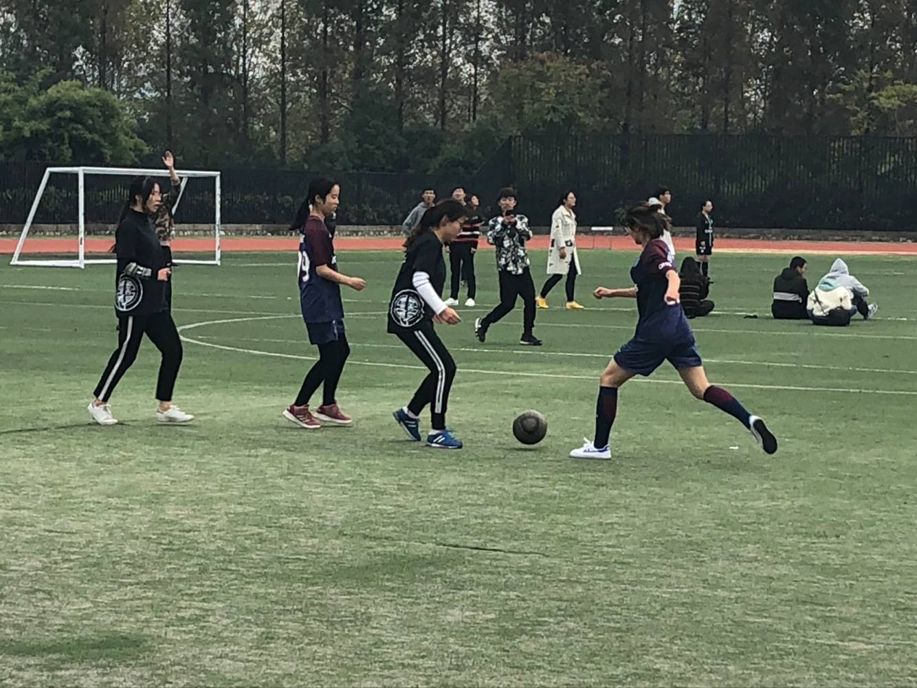 11月14日下午15:00,由英国威廉集团举办2018年女子足球比赛在西苑足球场进行。由公共管理学院、工商管理学院和williamhill英国联合组成的一支队伍将与经济学院和财税学院联合组成的队伍进行比赛。在初冬的大风中,运动员们各自热身后,随着裁判的一声哨响,比赛开始了。