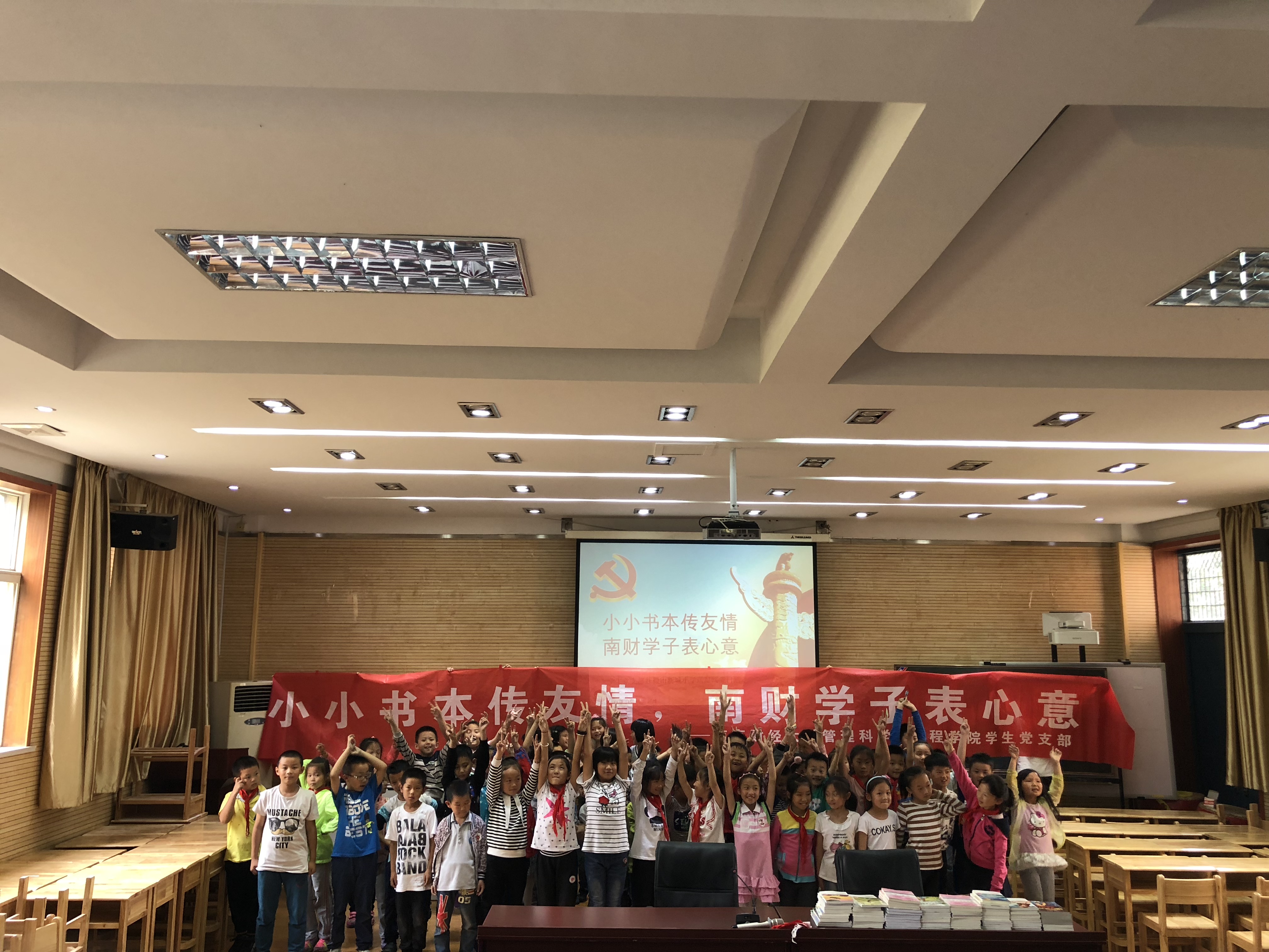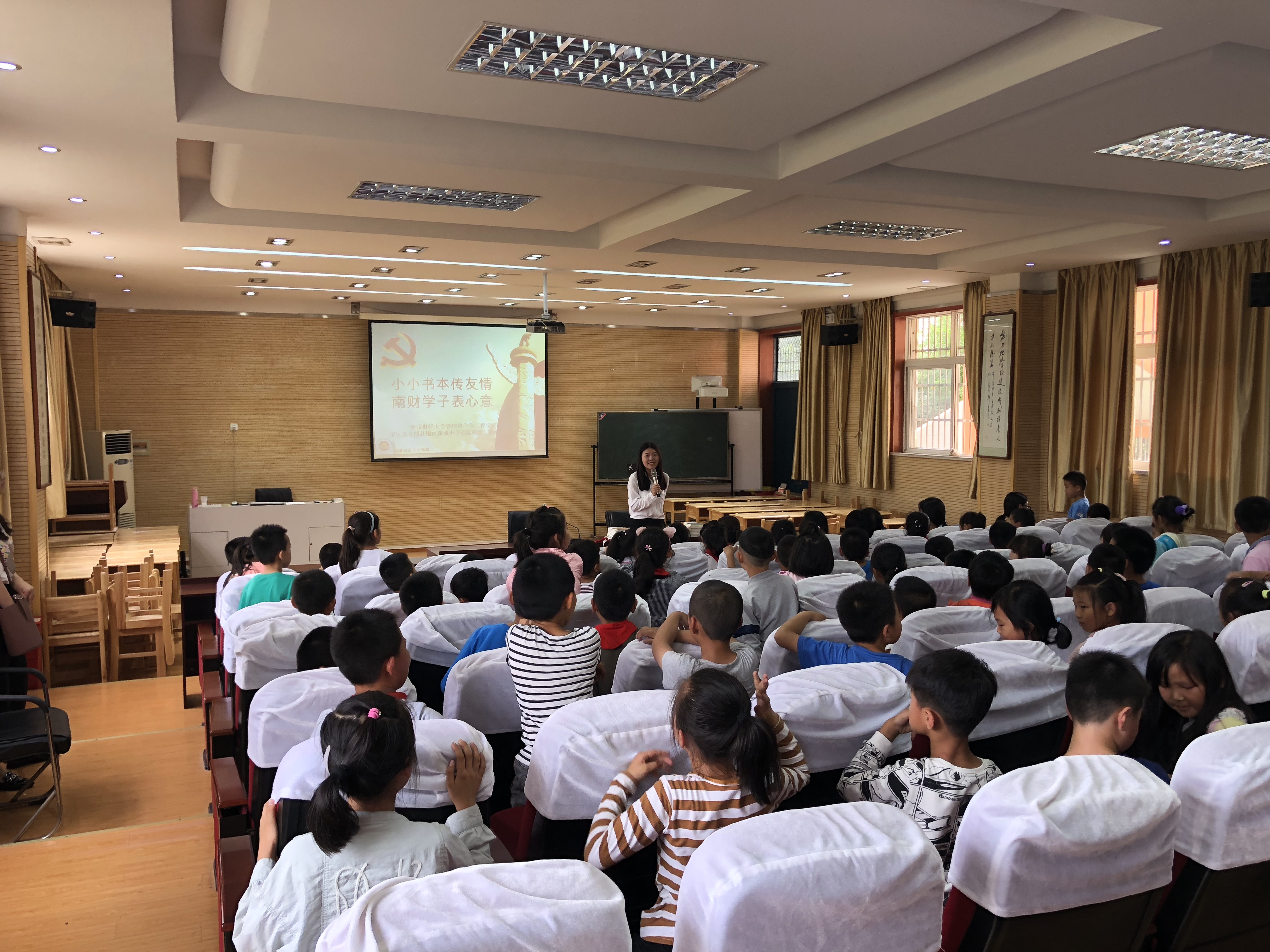管工学院学生党支部毕业班党员响应学院号召,捐出自己不需要用的图书,委托学院自主创业的大三学生党员处理这批图书,并利用这笔收入购入全新的适合青少年的读物,为本次赴摄山星城小学开展活动奠定基础。8位学生党员代表来到摄山星城小学后,受到了学校领导的热情接待,并在学校礼堂开展了面对面捐书活动。陆师同学作为代表,上台表明学院学生党支部为孩子们献爱心的心意,同时预祝了孩子们儿童节节日快乐。随后,学生党员们还与小学生们开展了一些互动游戏,孩子们积极主动,踊跃发言,分享自己喜欢的图书以及自己与图书之间曾发生过的有趣的故事。