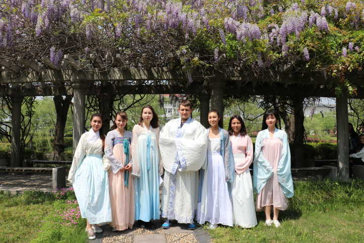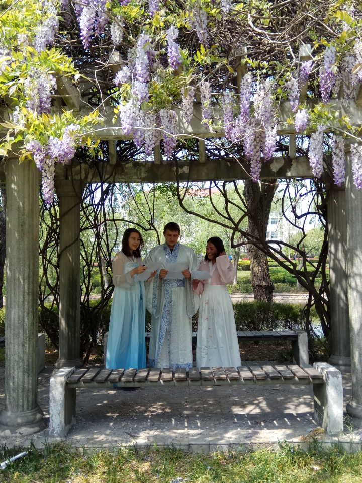 紫藤挂云木,花蔓宜阳春。为迎接第23个世界读书日,4月18日下午,williamhill英国于仙林校区西苑紫藤走廊举办“歌诵古典瑰宝,咏传华夏古韵”中国古代诗词咏唱活动,部分在校留学生和中国学生积极参加,共同品味中国古代文化。