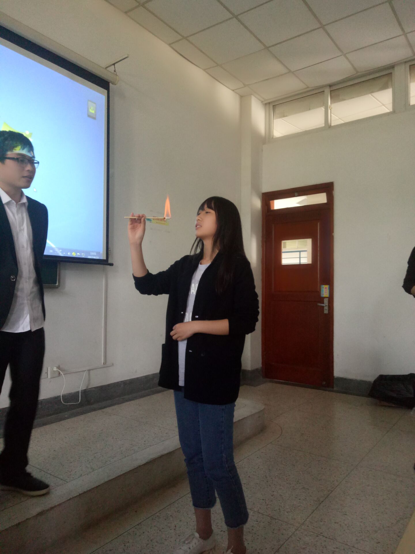 午休过后,是“拥抱世界”环节,刚开始同学们都有些害羞内敛,但很快便成功破冰进入状态,他们在阳光下拥抱,或深情,或欢乐,或激动,整个团队默契指数直线上升,大家都敞开了怀抱真诚地聚拢交流。接着,是惊险刺激的“吞火”游戏,旨在锻炼同学们的胆量和勇气,超越自己。同学们将事先点燃的酒精棉棒迅速放入口中,以此来熄灭火焰,许多胆小害怕的同学一开始不敢尝试,最终在大家的鼓励下顺利完成了任务。随后开展的是“演讲技巧”学习,同学们积极发言,踊跃地提出日常生活沟通中遇到的问题,老师耐心分析和解答。最后,本次活动在一段优美的华尔兹舞蹈中结束。