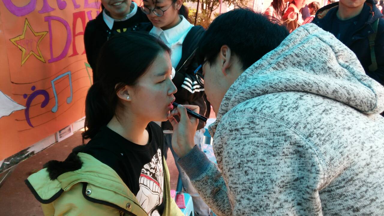 首先是男生为女生化妆环节。男生为女生涂好粉底液,然后描眉、画眼影、沟眼线、打腮红,一开始男生都有点手足无措笨手笨脚,不知如何操作,所幸旁边的女生热情进行指导,渐渐地现场默契指数飚升,无数少女心爆棚,只见最后朱唇一点,美美的妆容新鲜出炉了。化完妆的男生表示,化妆不易,女为悦己者容,男生应该好好珍惜愿为自己打扮的女生,守护她的岁月静好。接着,南京森林警察学院的同学受邀现场教授女子自卫防身术,包括一些基本姿势、拳法、肘法、腿法以及一些巧招,如侧身自卫、灵用手拳、肘部攻击、膝腿攻击、掌抓面眼、前额击面,各种招式简单易学,能一定程度抵御色狼的袭击,现场女生受益匪浅。此外,活动现场还有抽奖活动助兴。