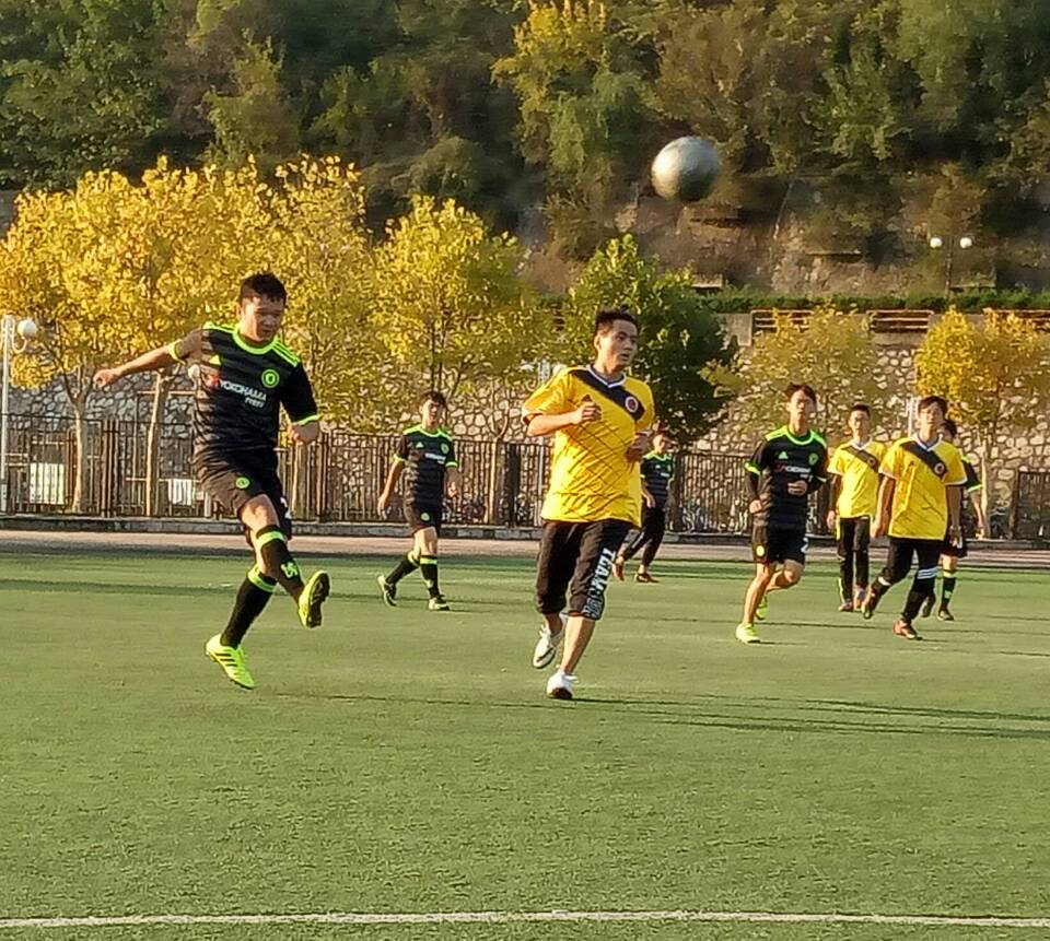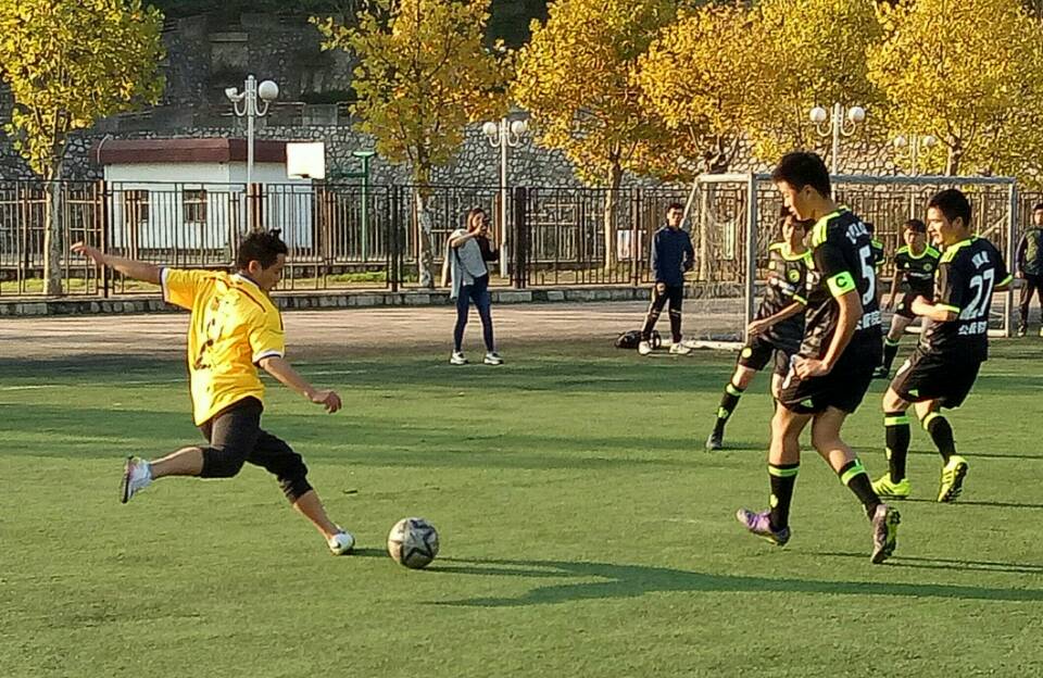 一声哨响,比赛开始。我院首先向对方发起了猛烈攻势,足球一直在公管院队禁区附近来回传接。虽然我院几次进攻均未得分,但在高昂的士气之下,我院仍旧占据先机。上半场中期,比赛出现了转机。对方因手球犯规,我方球员刘海涛获得点球机会,不负众望,一球进门,以一球的优势暂时领先。公管院虽然比分落后,但毫不示弱。上半场后期公管院开始反击,他们采取快攻战术迅速将球推进到我方禁区,在这紧急关头,对方球员失误,足球撞到了球门上,至此上半场结束。
