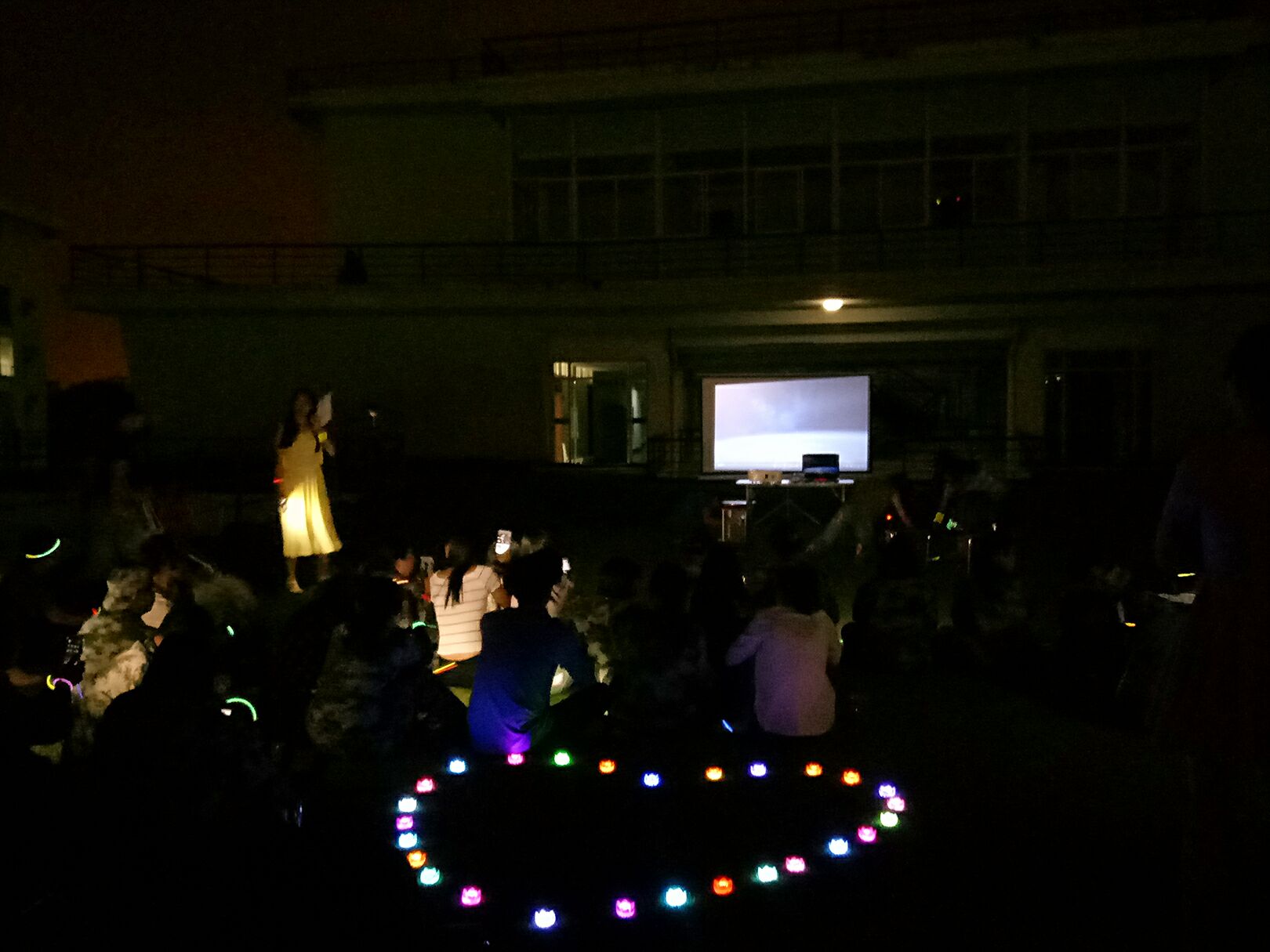 开场舞《咋了爸爸》,热情幽默,充分点燃了全场的情绪。接下来,袁书记做讲话,表达了对全体同学的问候与节日祝福。接下来,分别是诗朗诵《两个月亮》、《当你老了》,伴着悠扬的二胡曲《良宵》,皎洁的月光衬着乐声、朗诵声,意境悠长、富有诗意。最后,由i爱电影协会播放外国影片《海洋之歌》,全体观众互相倚坐在草坪上安静观赏。现场,工作人员用莲花灯摆成了爱心、用荧光棒摆出了南财校徽,以此表达对新生的关爱。