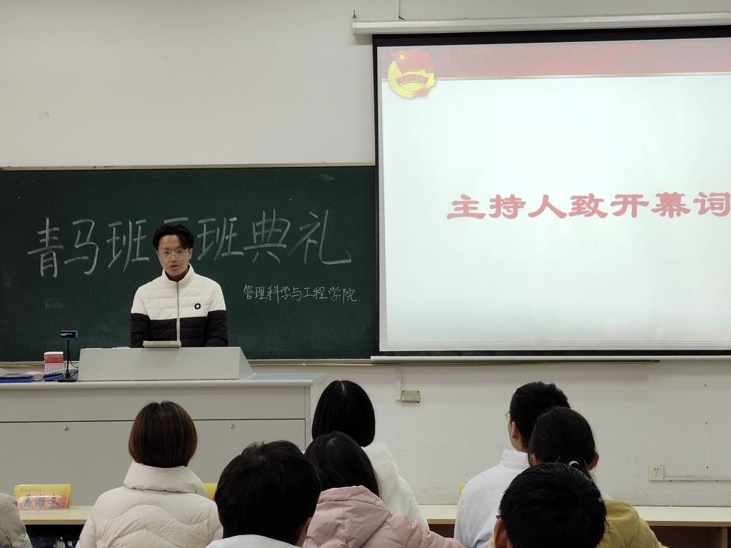 接着主持人致开幕词,院长助理孙启老师做动员讲话。孙启老师讲述了她对往期青马班的感受,并且向大家分享了一句话:“生平憎恨两种人:一种是没有信仰的博学多才者,另一种是充满信仰的愚昧无知者。“此话精确道出道德信仰与理论知识的重要性。