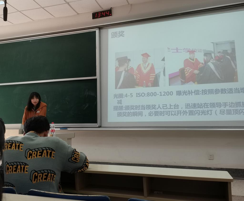 接着由陈雾竹老师讲解新闻摄影技巧。陈老师首先为大家讲述了摄影拍照的基础理念,以及一张好照片应该具备哪些标椎。其次,陈老师详细介绍了摄影的基础知识,如光圈,快门等。最后,陈老师讲述了新闻摄影的基本要求和技巧。