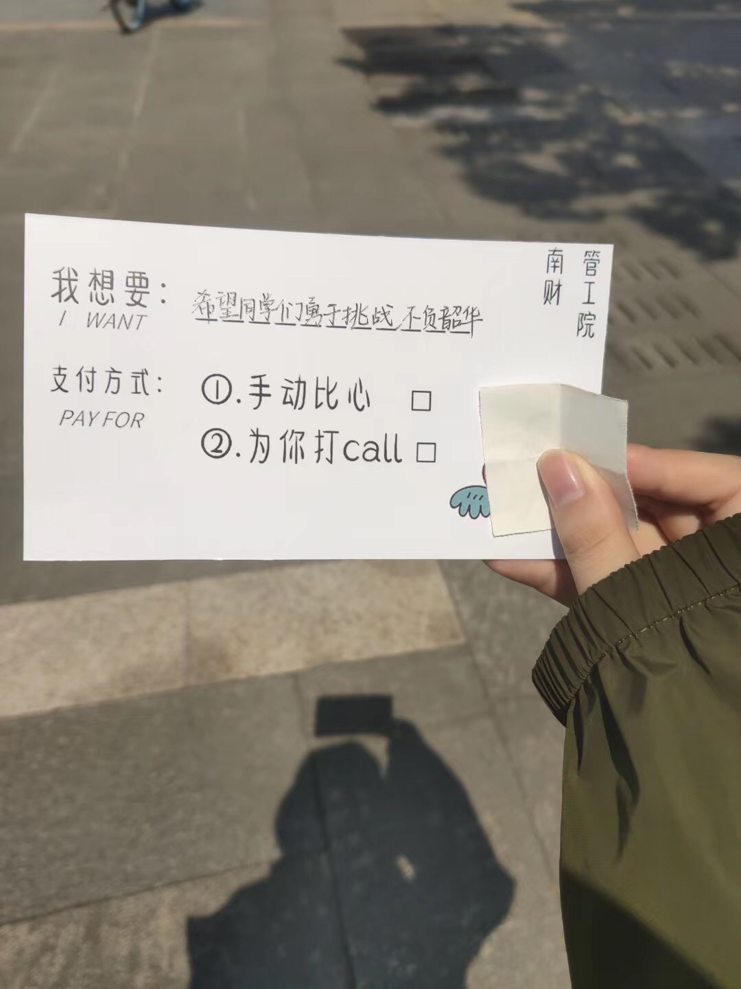“哆啦A梦”们在学校仙林校区中苑食堂前认领自己喜欢的心愿券,并保证一定努力帮助老师完成心愿,工作人员们后续将持续对接“哆啦A梦”们的完成进度。心愿券的支付方式很暖很萌,老师们可以选择“为你笔芯”或者“为你打call”就能完成支付。