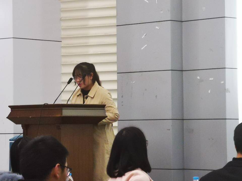 随后学生会主席、分团委副书记进行工作汇报,汇报结束后各部门进行述职答辩。各个部长以PPT的形式对部门的工作情况作出概述,总结了工作得失,并对未来工作进行部署。答辩中,学生会主席房雪婷提问外联部成员:“你认为在做外联的过程中需要注意什么?”,外联部成员回答:“需要注意与商家交流的细节,例如商家提出的要求以及商家提供的赞助价格。”