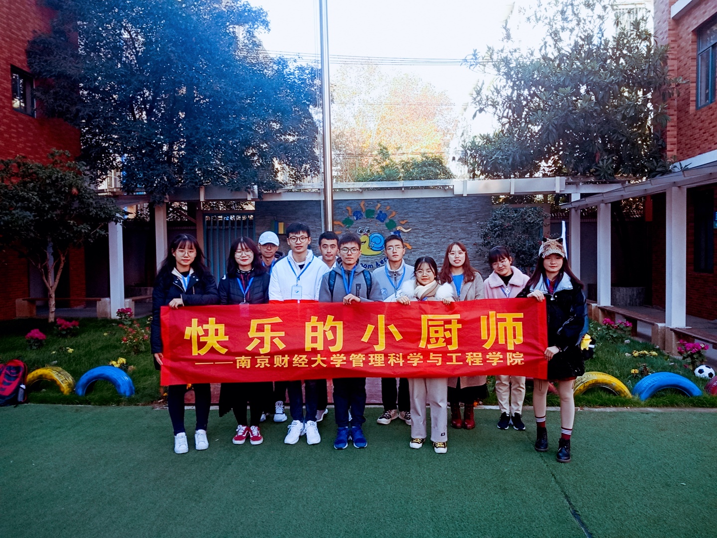 “把水放进锅里,然后点击这个按钮,看到水咕嘟咕嘟冒泡时就可以把汤圆放进去啦。”“我们一起来动手把面包片、火腿片……做成好吃的三明治好不好?”……11月29日上午,在南京玄武区特殊教育学校,一群青春洋溢的大学生们正在教一群残障孩子使用一些常用厨具,做简单的食物。“小老师”们教得细心,孩子们学得认真。