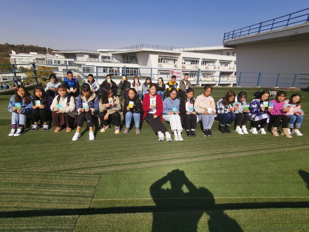 学生会成员们来到德济楼五楼草坪将暖心卡摆出扇形、爱心等造型进行拍摄。这些造型寓意着幸福美满的美好愿望。尽管寒风瑟瑟,但大家依旧热情高涨。全体成员一起围坐吟诵有关“二十四节气”的诗歌,一同体味“二十四节气”的魅力,朗读时大家声音洪亮,精神饱满。紧接着,大家一同分享有关“二十四节气”的习俗和小知识,质管1901班葛桐同学讲述了一个有趣的小故事,家乡在立夏这一天有“斗蛋”的民俗。斗蛋时蛋头斗蛋头,蛋尾击蛋尾。一个一个斗过去,破者认输,最后分出高低。蛋头胜者为第一,蛋称大王,蛋尾胜者为第二,蛋称小王或二王。这个故事极大地激发了同学们的好奇心,纷纷表示要去食堂买蛋与她斗出个高下。最后,同学们一起把制作好的“二十四节气券”送给老师和同学。
