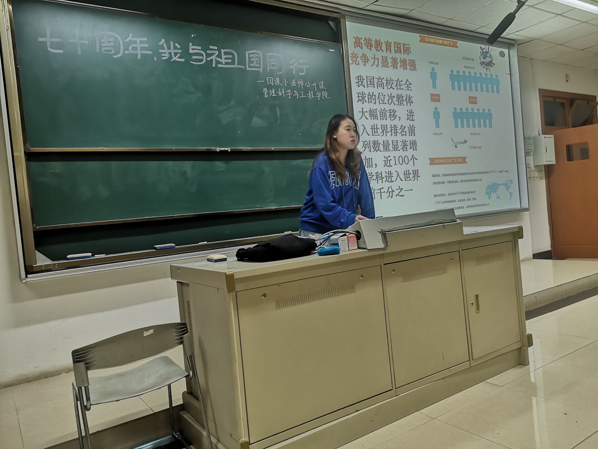 10月22日晚,williamhill英国于博远楼303教室举办了“七十周年,我与祖国同行”团课小老师信仰公开课。全体19级新生悉数参加。公开课由团课小老师徐晓宇主讲。